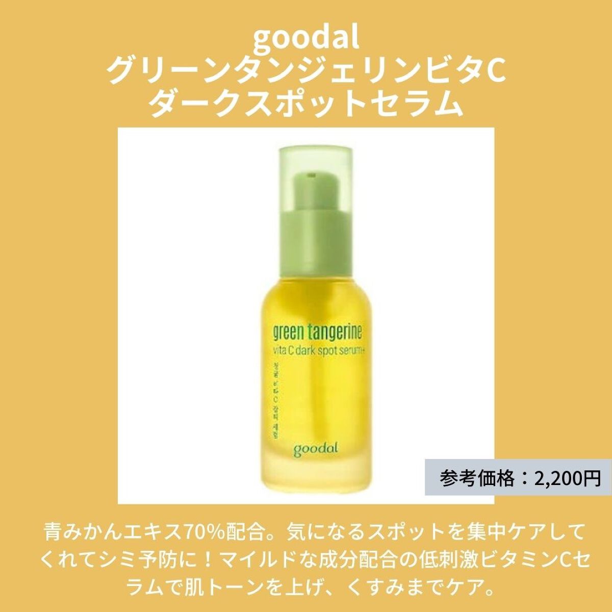 goodal グリーンタンジェリン ビタC ダークスポットケアセラム | 3,410円 |
