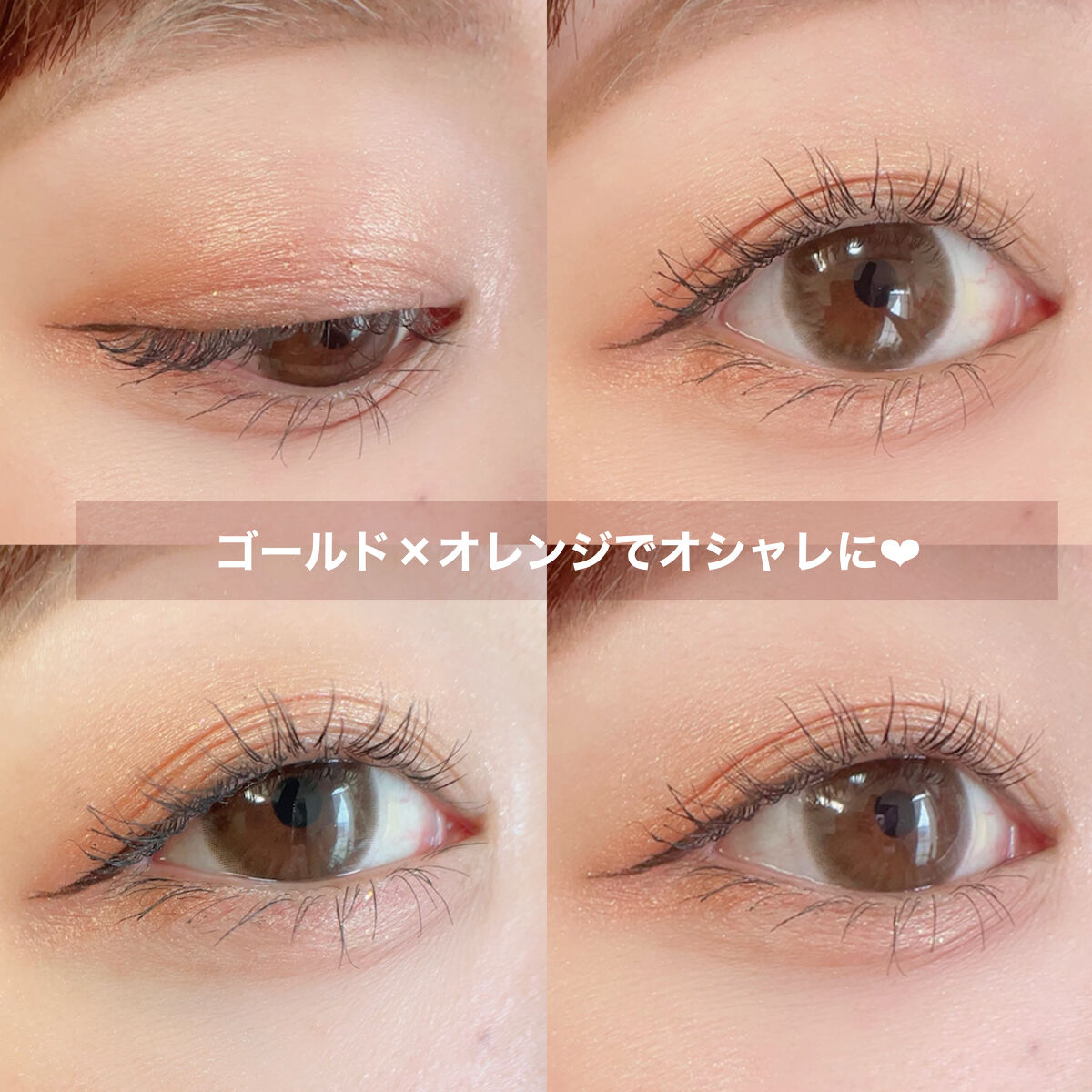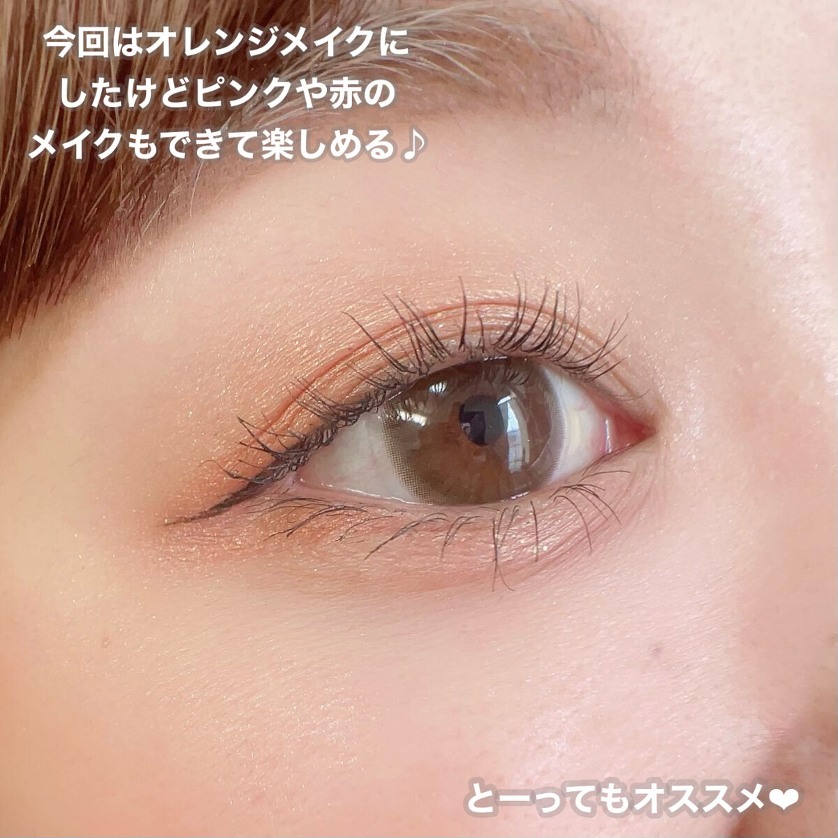 このアイシャドウは発色は薄めだけど その代わりにラメが凄くて!! なのでオレンジメイクしたいけど なかなか挑戦出来ない方とかにも◎ オレンジを単体で塗れば可愛い印象に ブラウンを加えれば大人っぽい印象に とっても可愛いアイシャドウなので 是非チェックしてみてください🍯💗