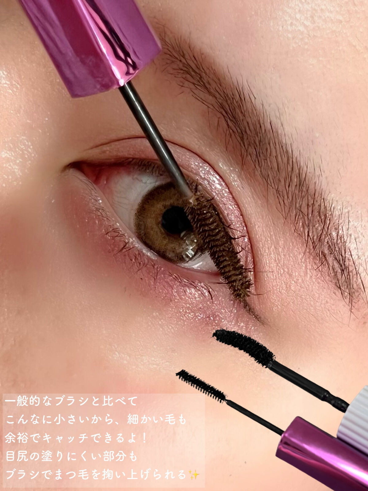 - ロングでもボリュームでもない、「自まつげを際立てる」という新発想 “見えないまつげ”も1本残らず際立てて、目ヂカラを最大限に引き出す 1.うぶ毛レベルの“見えないまつげ”も際立てる「高密着フィルム」 2.あらゆるまつげも1本残らず際立てる「超極細三角ブラシ」