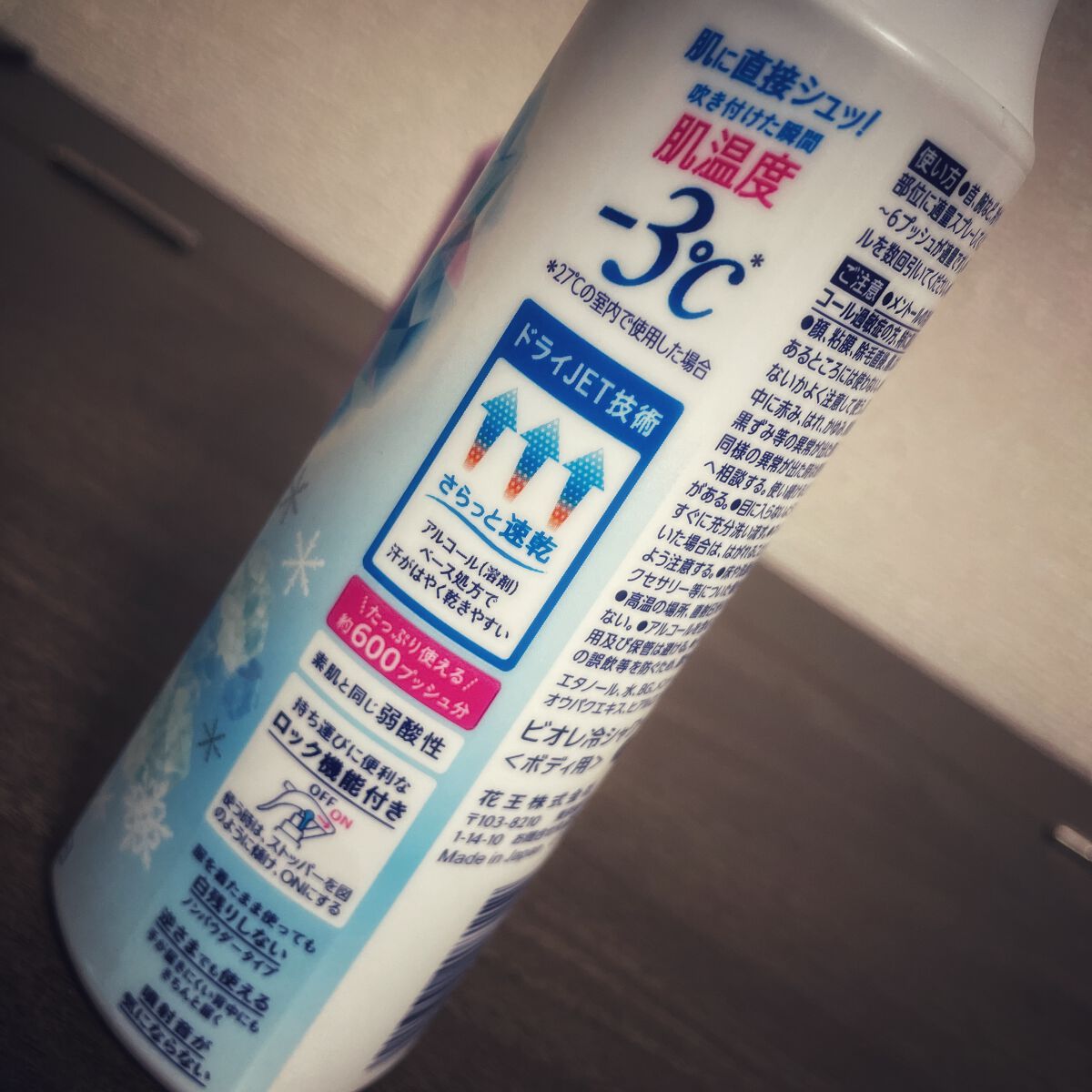 - 汗をかいた肌に直接シャワー!殺菌して汗ニオわせない。殺菌防臭技術採用。汗がはやく乾きやすいアルコール(溶剤)ベース処方の「ドライJET技術」採用。素肌と同じ弱酸性。ワキ・胸元・背中・足など全身に使えるシャワータイプ。すぐにシャワーを浴びられないときに。服を着たまま使っても白残りしない。逆さまでも使える。噴射音気にならない。※制汗アルミニウム塩(制汗効果のある成分)は使用していません。(医薬部外品)