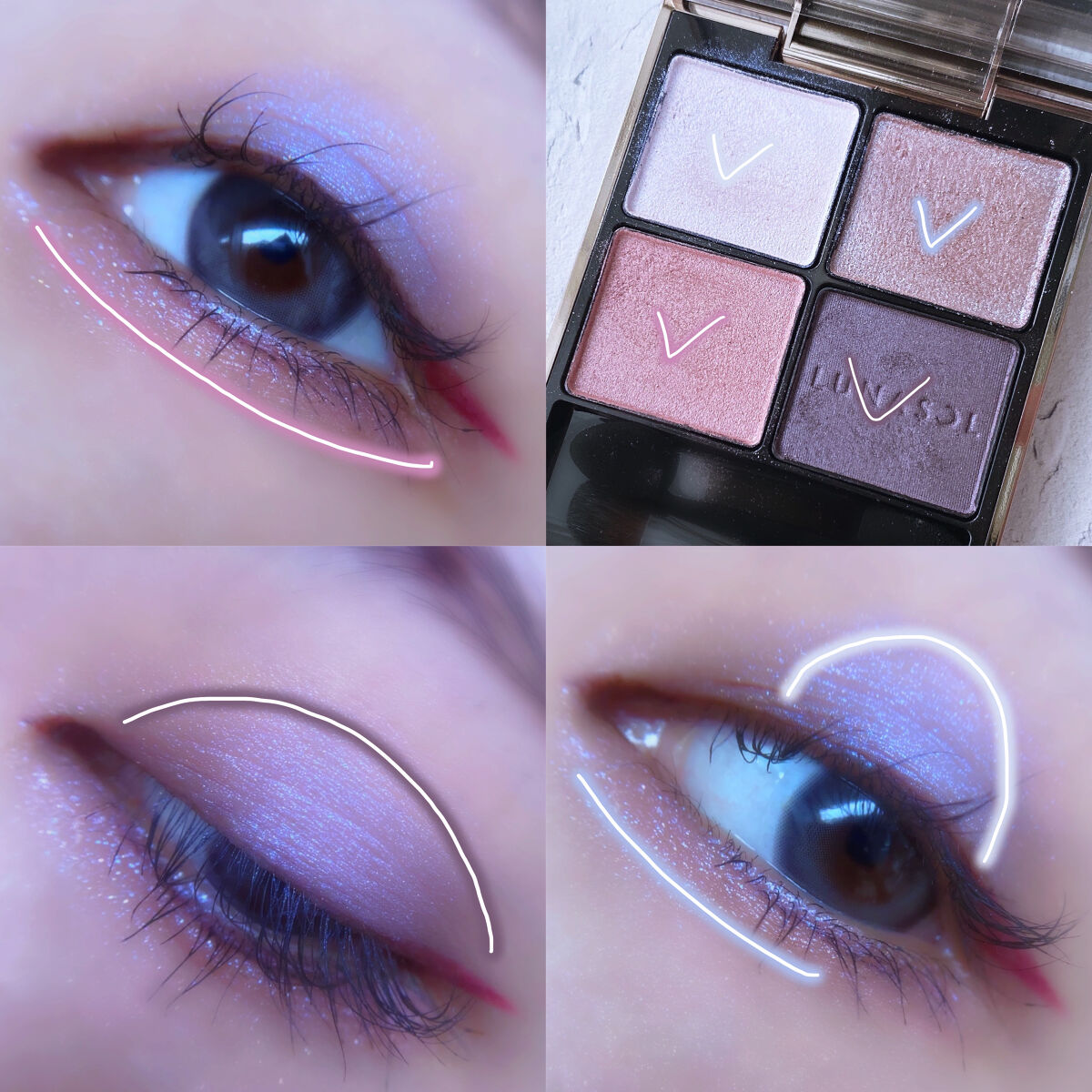 イルミネーション級のラメでホリデーメイクにもピッタリ💖 ▶︎LUNASOL アイカラーレーション 03 Butterfly Wing 見た目はどぎついピンク!って感じで使いにくそうなイメージだけど使ってみると透明感あって可愛いの🥹✨ 特に右の青ラメがめちゃくちゃ綺麗です💎˚✧₊ 最近はブラウン系メイクばかりしてたけど久しぶりに使ったらやっぱり盛れる!