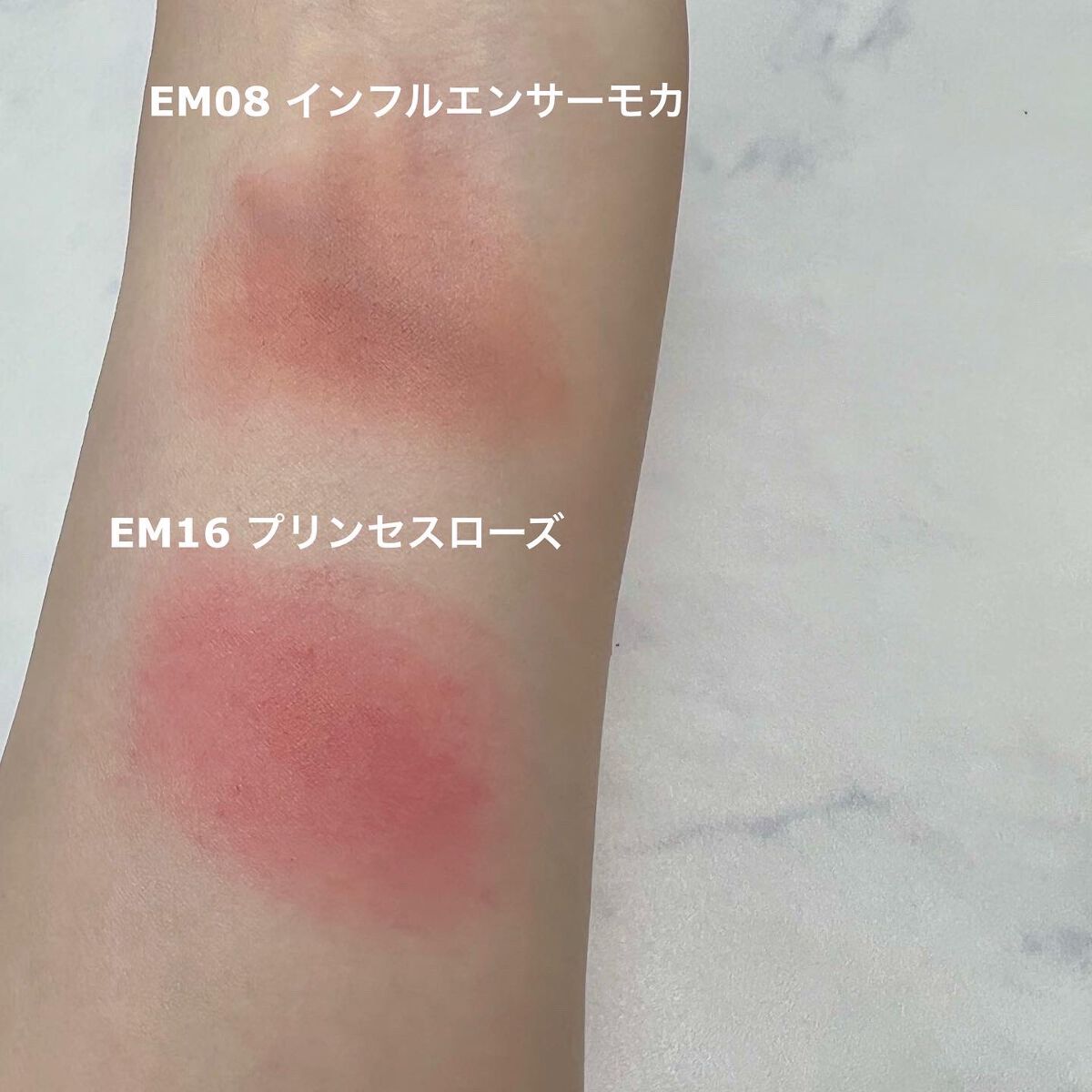 - <EM-J01 ピンクミスト> ジメチコン、ジメチコンクロスポリマー、トリベヘニン、リンゴ酸ジイソステアリル、(ビニルジメチコン/メチコンシルセスキオキサン)クロスポリマー、酸化チタン、セチルPEG/PPG-10/1ジメチコン、イソステアリン酸ソルビタン、(VP/ヘキサデセン)コポリマー、トリイソステアリン酸ポリグリセリル-2、ジイソステアリン酸ポリグリセリル-2、赤230(1)、赤202、黄4、香料、デヒドロ酢酸、酸化鉄 <EM-J02 ベルベットムード > ジメチコン、ジメチコンクロスポリマー、トリベヘニン、リンゴ酸ジイソステアリル、酸化チタン、(ビニルジメチコン/メチコンシルセスキオキサン)クロスポリマー、セチルPEG/PPG-10/1ジメチコン、イソステアリン酸ソルビタン、(VP/ヘキサデセン)コポリマー、トリイソステアリン酸ポリグリセリル-2、酸化鉄、赤202、ジイソステアリン酸ポリグリセリル-2香料、ジメチルシリル化シリカ、デヒドロ酢酸、黄4、黄5 <EM01 ポップスターブリック> ジメチコン、ジメチコンクロスポリマー、トリベヘニン、トリイソステアリン酸ポリグリセリル-2、酸化鉄、(ビニルジメチコン/メチコンシルセスキオキサン)クロスポリマー、セチルPEG/PPG-10/1ジメチコン、イソステアリン酸ソルビタン、(VP/ヘキサデセン)コポリマー、黄5、リンゴ酸ジイソステアリル、赤202、ジイソステアリン酸ポリグリセリル-2、香料、デヒドロ酢酸、水添ロジン酸メチル <EM03 モデルテラコッタ> ジメチコン、ジメチコンクロスポリマー、トリイソステアリン酸ポリグリセリル-2、トリベヘニン、黄4、酸化鉄、(ビニルジメチコン/メチコンシルセスキオキサン)クロスポリマー、セチルジメチコンコポリオール、イソステアリン酸ソルビタン、(VP/ヘキサデセン)コポリマー、リンゴ酸ジイソステアリル、香料、デヒドロ酢酸、水添ロジン酸メチル <EM05 美人シナモン> ジメチコン、ジメチコンクロスポリマー、トリベヘニン、リンゴ酸ジイソステアリル、酸化チタン、酸化鉄、トリイソステアリン酸ポリグリセリル-2、(ビニルジメチコン/メチコンシルセスキオキサン)クロスポリマー、セチルジメチコンコポリオール、イソステアリン酸ソルビタン、(VP/ヘキサデセン)コポリマー、香料、赤202、ジイソステアリン酸ポリグリセリル-2、デヒドロ酢酸、水添ロジン酸メチル <EM07 ファッショニスタココア> ジメチコン、ジメチコンクロスポリマー、トリイソステアリン酸ポリグリセリル-2、トリベヘニン、赤227、(ビニルジメチコン/メチコンシルセスキオキサン)クロスポリマー、酸化鉄、セチルジメチコンコポリオール、イソステアリン酸ソルビタン、(VP/ヘキサデセン)コポリマー、黄5、リンゴ酸ジイソステアリル、香料、デヒドロ酢酸、水添ロジン酸メチル <EM08 インフルエンサーモカ> ジメチコン、ジメチコンクロスポリマー、トリベヘニン、トリイソステアリン酸ポリグリセリル-2、(ビニルジメチコン/メチコンシルセスキオキサン)クロスポリマー、リンゴ酸ジイソステアリル、酸化鉄、酸化チタン、セチルジメチコンコポリオール、イソステアリン酸ソルビタン、(VP/ヘキサデセン)コポリマー、黄5、赤202、ジイソステアリン酸ポリグリセリル-2、香料、デヒドロ酢酸、水添ロジン酸メチル <EM09 セレブブラウン> ジメチコン、ジメチコンクロスポリマー、トリベヘニン、リンゴ酸ジイソステアリル、酸化鉄、酸化チタン、トリイソステアリン酸ポリグリセリル-2、(ビニルジメチコン/メチコンシルセスキオキサン)クロスポリマー、セチルジメチコンコポリオール、イソステアリン酸ソルビタン、(VP/ヘキサデセン)コポリマー、香料、赤202、ジイソステアリン酸ポリグリセリル-2、デヒドロ酢酸、水添ロジン酸メチル <EM10 クイーンローズティー> ジメチコン、ジメチコンクロスポリマー、トリベヘニン、トリイソステアリン酸ポリグリセリル-2、(ビニルジメチコン/メチコンシルセスキオキサン)クロスポリマー、リンゴ酸ジイソステアリル、酸化チタン、酸化鉄、セチルジメチコンコポリオール、イソステアリン酸ソルビタン、(VP/ヘキサデセン)コポリマー、赤227、香料、デヒドロ酢酸、水添ロジン酸メチル <EM11 アーティストモーヴ> ジメチコン、ジメチコンクロスポリマー、トリベヘニン、リンゴ酸ジイソステアリル、(ビニルジメチコン/メチコンシルセスキオキサン)クロスポリマー、酸化チタン、トリイソステアリン酸ポリグリセリル-2、酸化鉄、セチルジメチコンコポリオール、イソステアリン酸ソルビタン、(VP/ヘキサデセン)コポリマー、黄5、赤202、ジイソステアリン酸ポリグリセリル-2、香料、デヒドロ酢酸、水添ロジン酸メチル <EM12 高嶺の花コーラル> ジメチコン、ジメチコンクロスポリマー、トリベヘニン、リンゴ酸ジイソステアリル、酸化チタン、(ビニルジメチコン/メチコンシルセスキオキサン)クロスポリマー、トリイソステアリン酸ポリグリセリル-2、セチルジメチコンコポリオール、イソステアリン酸ソルビタン、(VP/ヘキサデセン)コポリマー、黄4