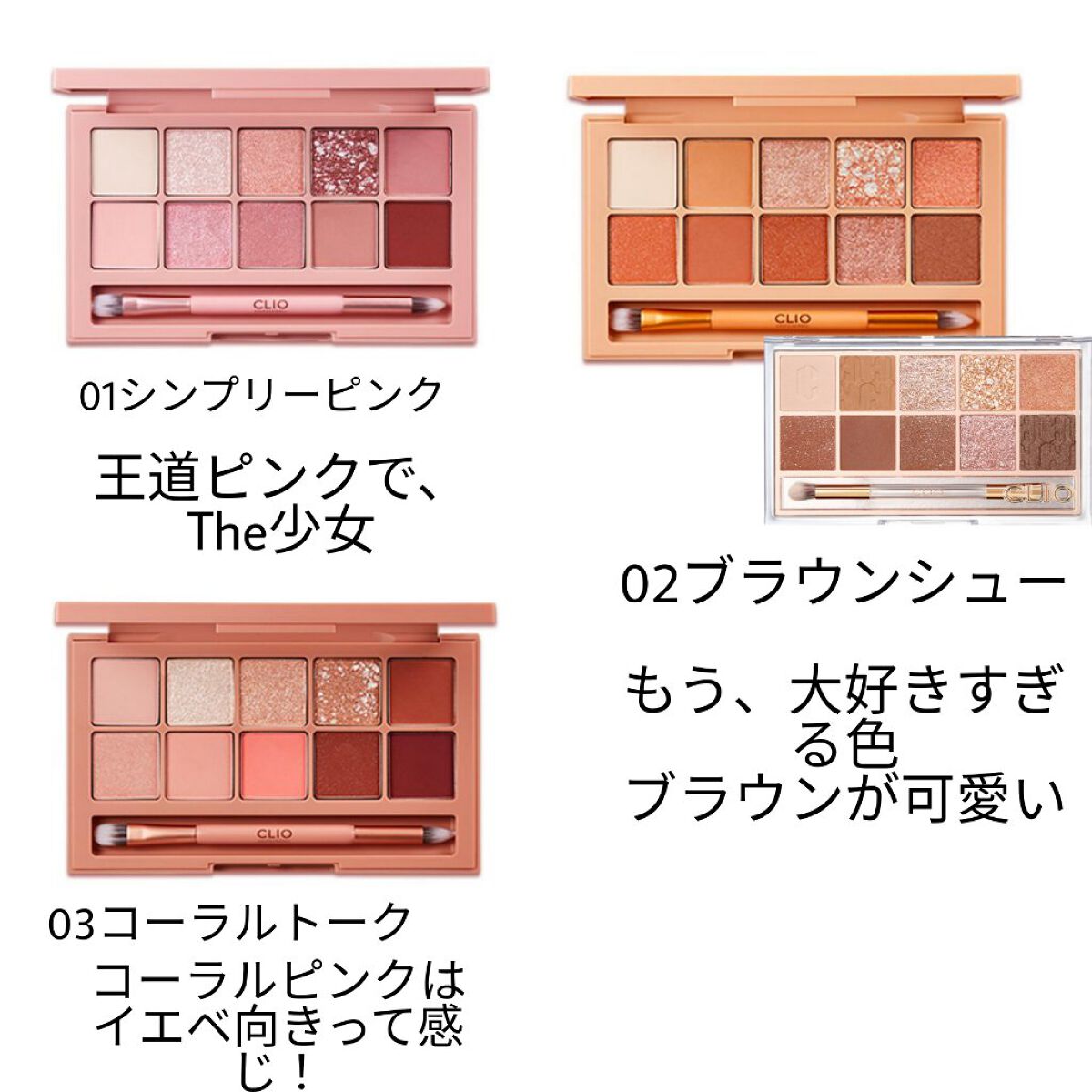 CLIO プロアイパレットエアー11 ショッピングチーズ今日もピンクメイク🩷クリスタルポーとは違う雰囲気のピンクです😚柔らかい雰囲気になったかなーと思います👐ピンクでグラデして二重幅にほんのりブラウン、最後にまたキラキララメを✨✨プロアイパレ...
