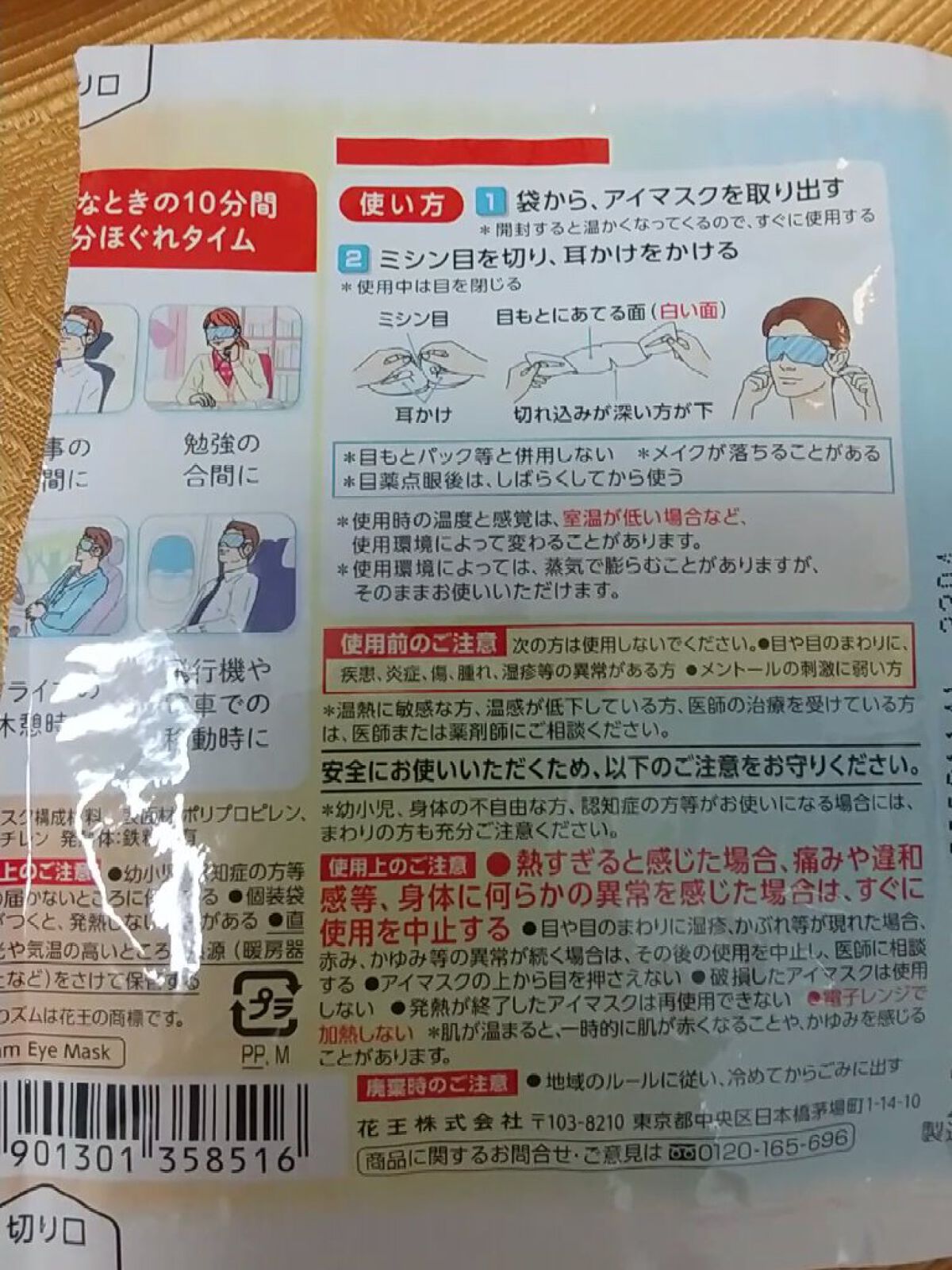 - 働き続けた目にじ~んわり。蒸気で気分ほぐして、そのあとメントールの心地よい刺激で気分爽快! アイマスクをつけると、心地よい蒸気が10分程度、目と目元を包み、はりつめた気分をほぐします。はずすと、メントールの心地よい刺激で気分爽快!仕事・勉強・ドライブの合間など、もうひとがんばりの前にオススメです。 ●開封するだけで温まり、1枚ずつ個装でかさばらないので職場や長距離での移動中など、外出先でも便利です。 ●フレッシュミントの香り