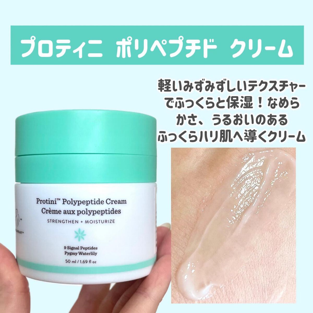 ずっと気にっていたドラクエエレファント。今回はプロティニ ポリペプチド クリームをお試しさせていただきました。 テクスチャーはこっくりめですが、肌馴染みがよく浸透した感じがあります。 9種類のペプチド、アミノ酸、ピグミーウォーターリリーエキスGLを独自処方で配合しているらしく、しっかり潤った感じで、もちもちした肌になります☺️