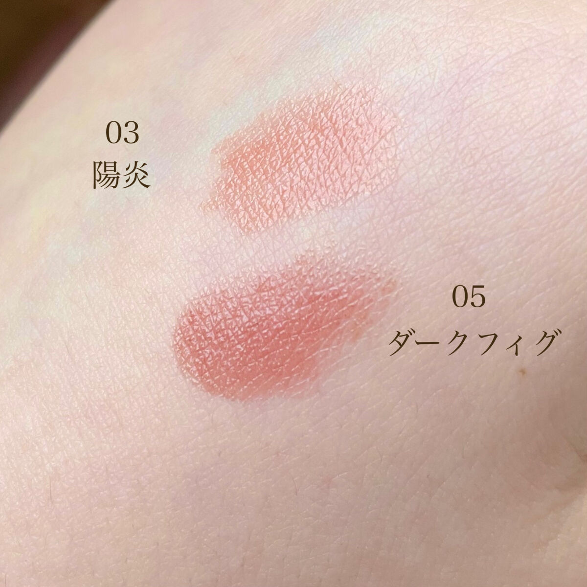 KATEケイトリップモンスター05 ダークフィグくすみが強いブラウンレッドカラー。でも、透け感もあって可愛い。塗ってしばらく放置するとティッシュオフしてもつかないし色持ちもよくてホント助かる!イエベもブルベも使いやすいニュートラルカラーじゃな...