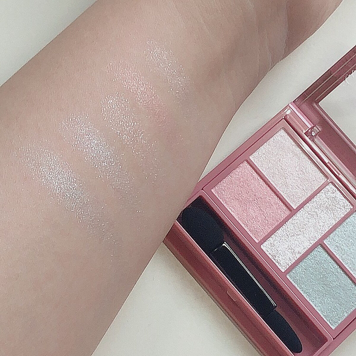 - 1枚のパレットで2つのスタイルが完成! 5色の欲ばりアイシャドウ♥ メインカラーを選んで2つのスタイルが楽しめる! A→B→D でスタイル1 A→C→D でスタイル2 繊細な粉質が、しっとりとまぶたに密着して色落ちを防ぎます。 透明感のあるキラうるトッピングジュエル(繊細ラメ)は、気分によってトッピング!
