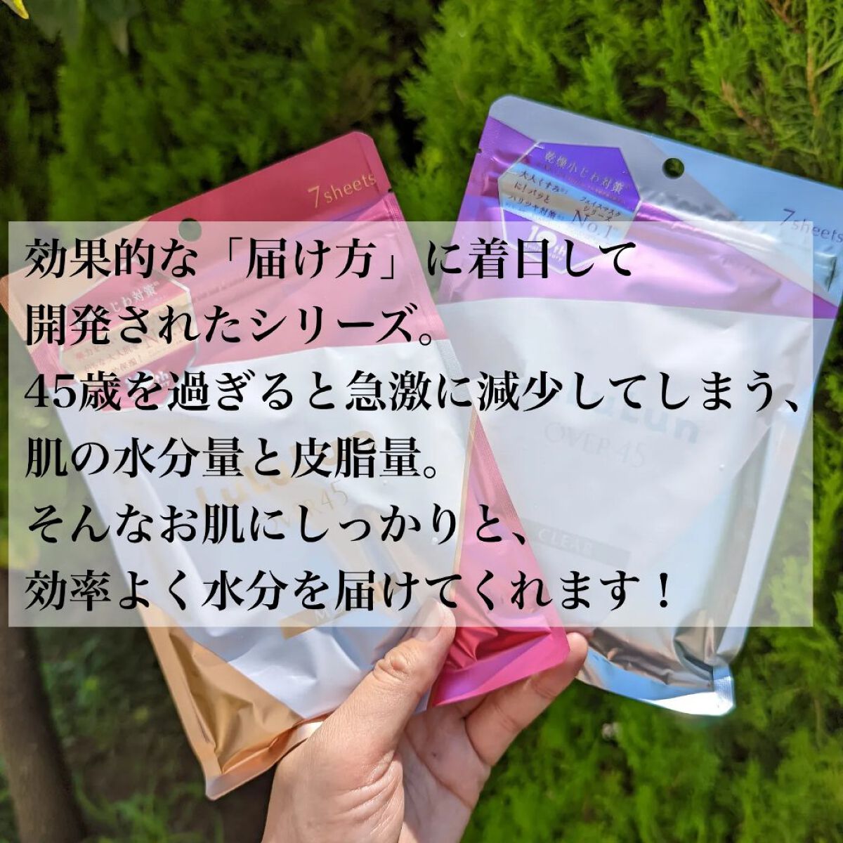 ☆ルルルンOver45カメリアピンク大好きルルルンのフェイスマスクからでたOver45 こちらはモイストタイプのカメリアピンククリアタイプのアイリスブルーもあるよ年齢を重ねてホルモンバランスが崩れてくるとお肌の乾燥やトラブルに繋がってくるらし...