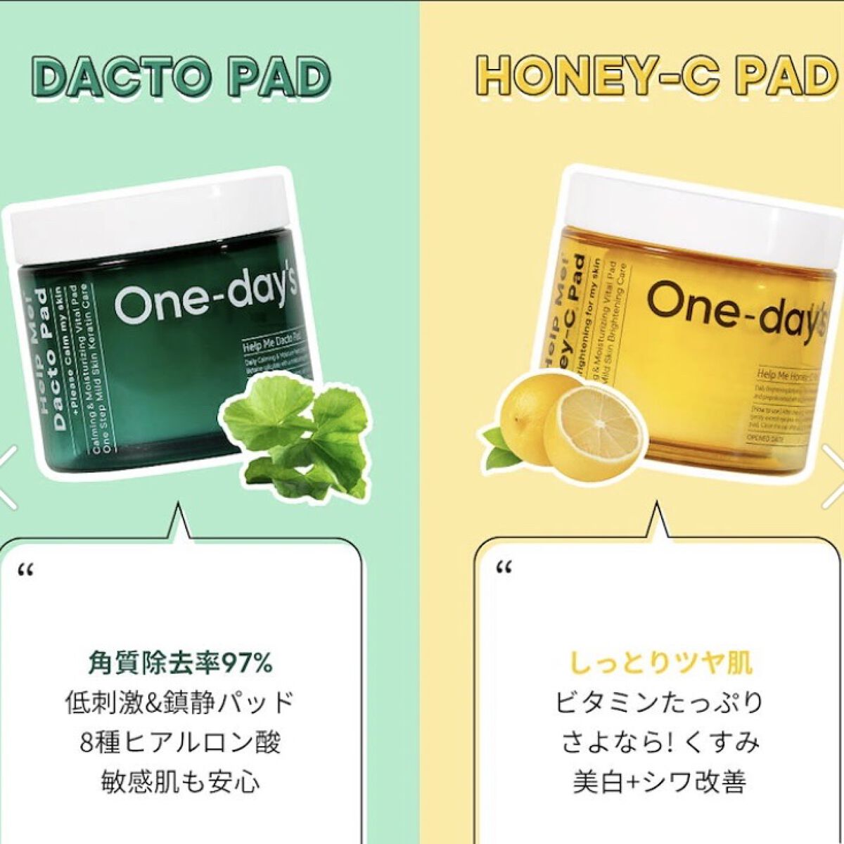 ※2025年使用品トナーパッド・商品名One-day'syou(ワンデイズユー)ヘルプミー! ハニーCパッド リアルコラーゲンパッドミニサイズ10枚・値段定価各330円・購入場所マツキヨ・評価★★★☆☆緑のダクトパッドもあったけどそれは通常サ...