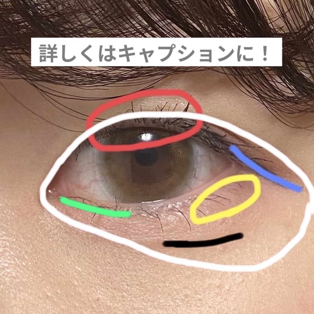 主に参考にした画像は公式インスタの220323の青い壁の投稿💄 アイメイク以外のポイントは明るめの陶器肌顔が暗くならないようにノーズシャドウは控えめハイライトは濡れ艶系をしっかり(特に鼻)アーチ眉でできればグレー(黒髪の場合)マットで濃いめのグラデリップカラコンは黒〜暗めor明るめのグレー系にするです!! アイメイクの手順1 💛と💚を混ぜて二重幅と目頭側に少し(上にぼかす)、できるだけ薄く2 💚と🧡を混ぜて下瞼全体に塗る、🧡は少なめに3 🤍ふたつを混ぜて黒目の下に細めに塗る4 ❤️を目尻に、あまり広げすぎない5 アイラインはたれもはねもせず横に長めに引く(画像は失敗してます😂)6 涙袋の影を実際の涙袋の影より少し下に目の輪郭と並行に描く7 まつげはできるだけセパレートさせる、下まつげはたっぷり塗れるとベスト! アイメイクで大事なのは上瞼は塗りすぎず薄い色、涙袋は暗めのオレンジベージュで下重心にすること!