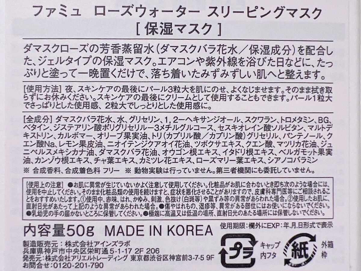 商品詳細情報FEMMUE ローズウォーター スリーピングマスク