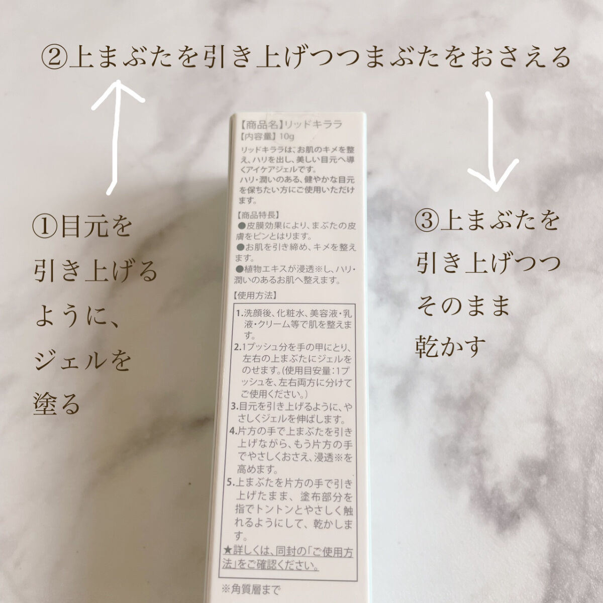 まぶた全体に塗るとリフトアップするそうですが、私の場合脂肪が多いせいかあまり変わりませんでした。 狭くなった二重の幅にも塗ってみたらハリが出て二重幅が若干広がりました。 今まで使った商品のようにただつっぱるだけではなくハリが出るので、ちょっと期待しています。