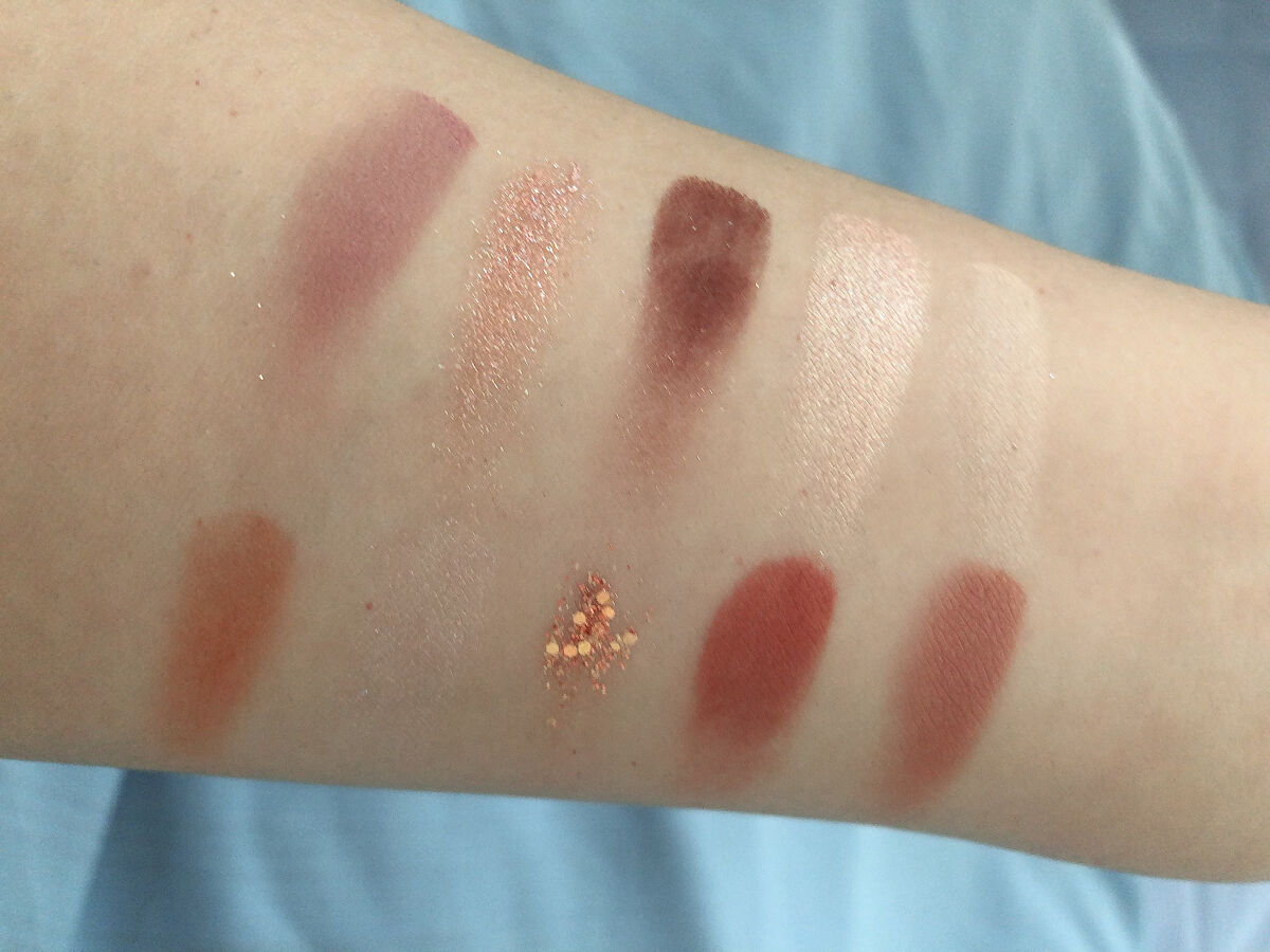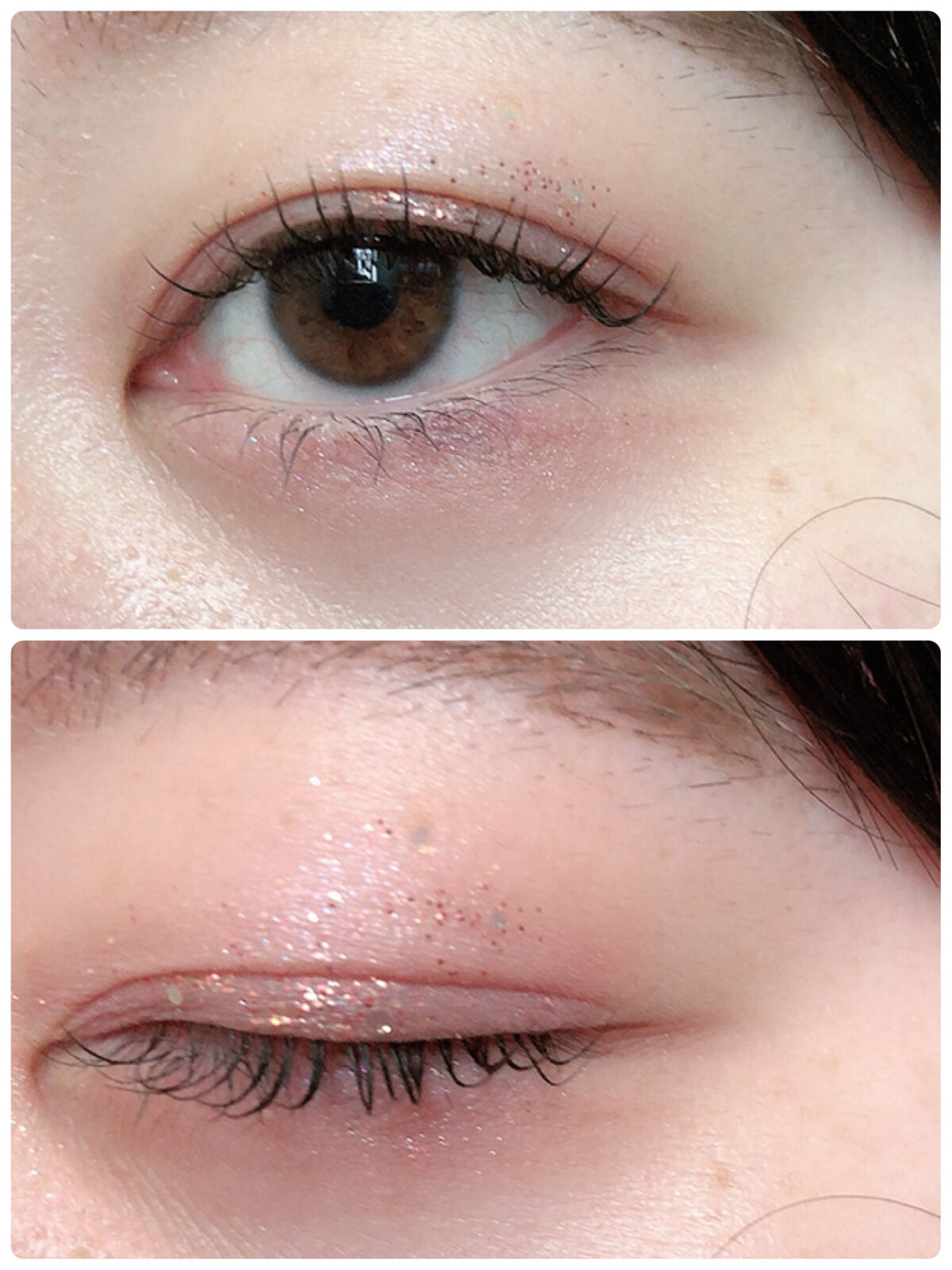 いちごみるくっぽいのと、くすみラベンダーの2パターンでアイメイクできるのは嬉しい! マットもラメも発色がいい マットは粉っぽくならない ラメはしっとり マット6色(うちラメ入り1色) ラメ4色(うち大粒1色) ベースから締め色まで揃って🥇 ラメはかなりしっとり&柔らかいです!固いと思って、結構力いれたらたくさん取れました笑 大粒ラメは、指でもブラシでも取りやすい🌟