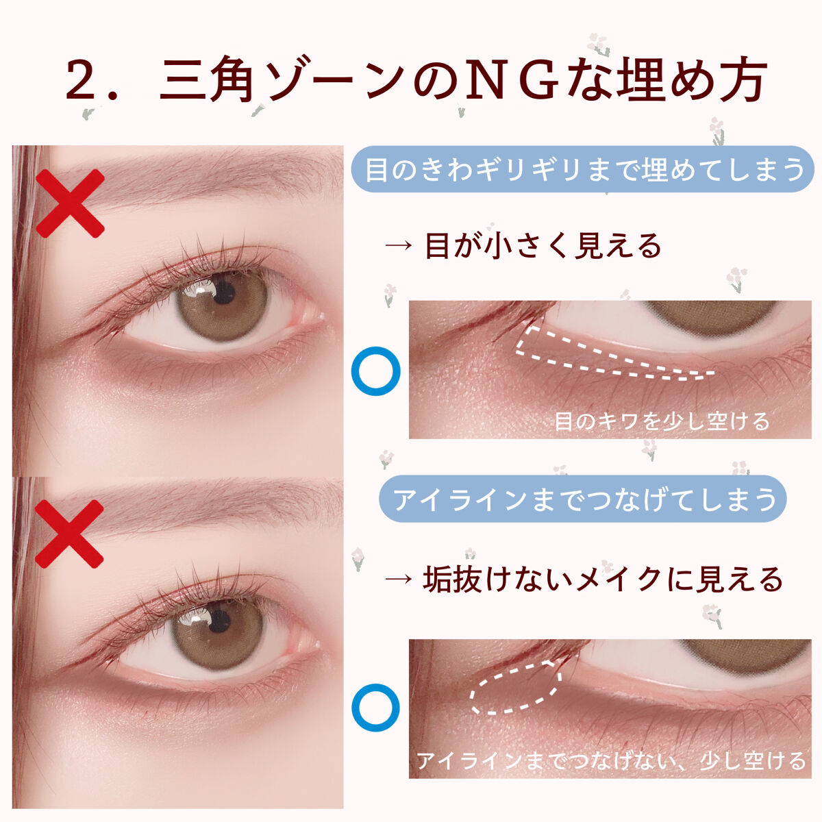 三角ゾーンにぴったりなやつ見つけた! プランぷくコーデアイズのラインを引くカラー+チップがラインを引くには太すぎるし色が合わない(個人的に) チップの太さ、柔らかさも絶妙だし色も粘膜っぽいから本当に使える!!! 粘膜っぽくキワに引くのも◎ 使い道に困っている方(いないかも)ぜひやってみてください♡