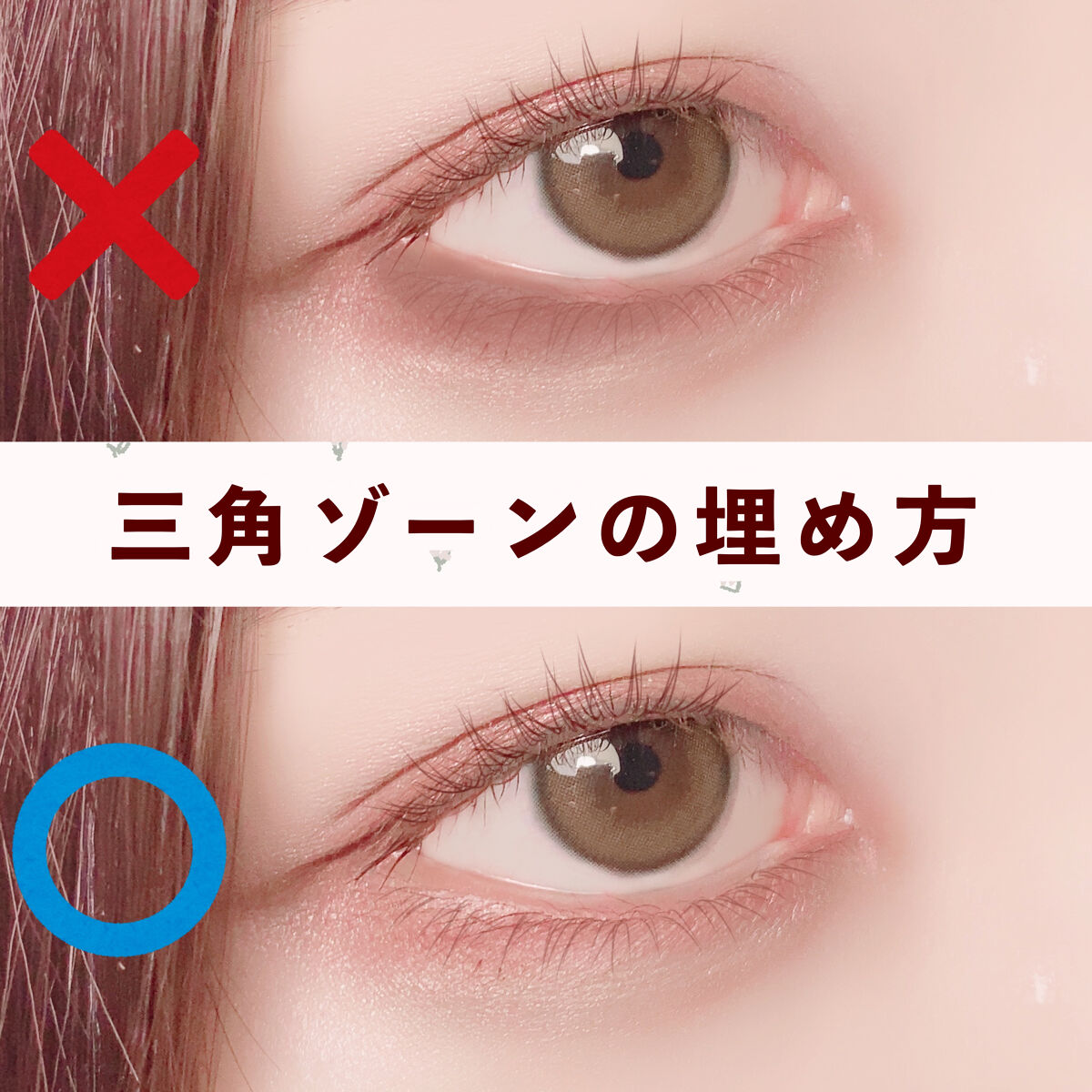 ・涙袋の影の部分まで、ベースを塗ることで縦幅がかなり強調されて丸目にみえる! ・アイシャドウの陰影とラメのハイライト効果で奥まった目に光を取り込んで出目っぽくみせる! ・淡いピンクのアイシャドウ、艶のようなラメ、細くて短いブラックアイラインが特徴 ・つり目を自然にいかせて、美人な雰囲気になれる! ・単色メイクは簡単そうに見えて難しいけど、ブラシを使うと綺麗なグラデーションになる! ・目の形によって中間色をどこまで入れるか変わるけど「目を開けた時に5mm見える」を基準にする