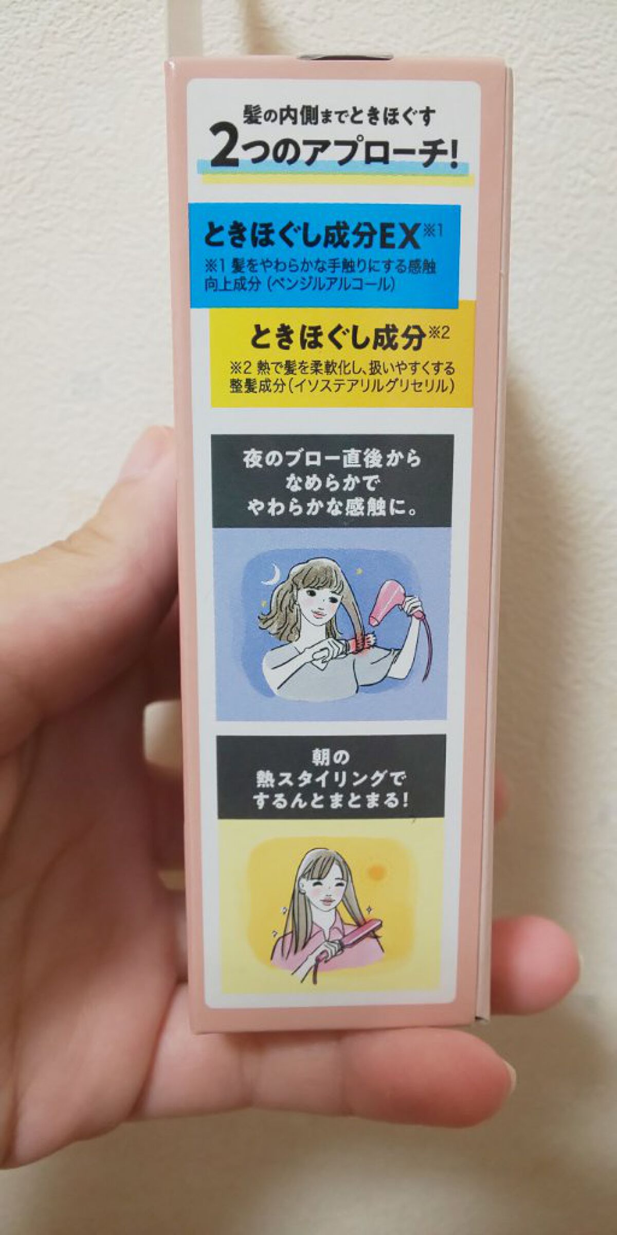 - 頑固なゴワゴワくせ毛に、内側までときほぐす2つのアプローチで、365日使うたび髪やわらかくまとまる。 ●ときほぐし成分EX※1が髪内部のコルテックスに浸透。夜のブロー直後からなめらかでやわらかな感触に ●ときほぐし成分※2が髪内部の細胞間脂質に浸透。朝の熱スタイリングでするんとまとまる ※1感触向上成分(ベンジルアルコール)※2整髪成分(イソステアリルグリセリル) ■気分ほぐれるホワイトフローラルの香り