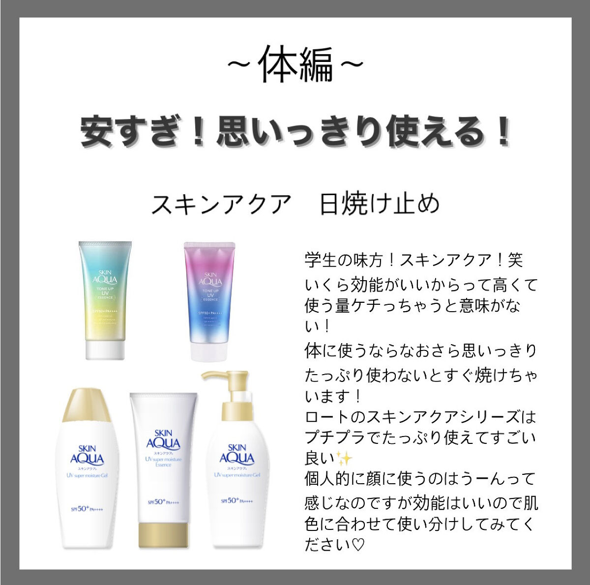 おすすめアイテムスキンアクア×日焼け止めミルク