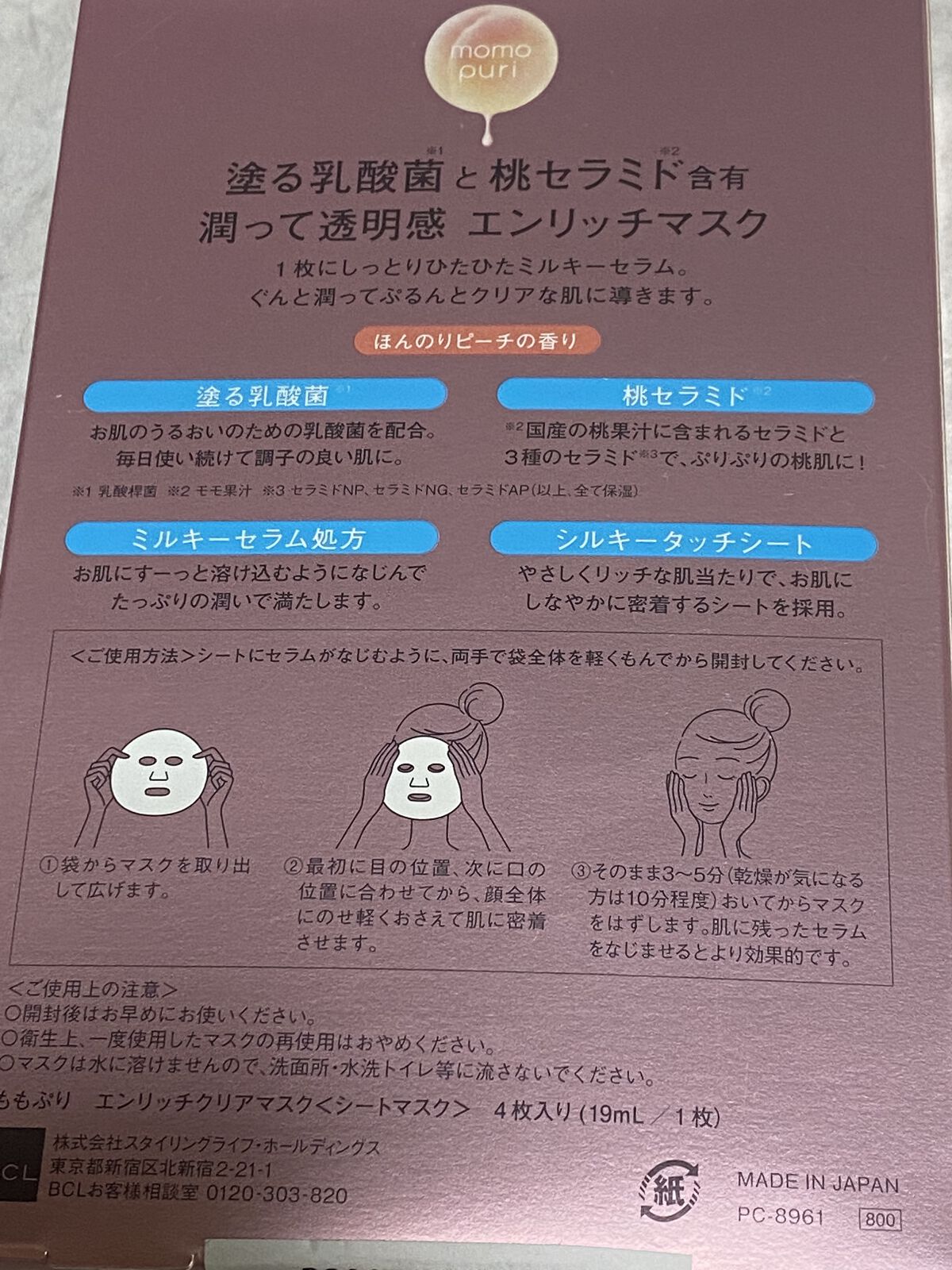 | 桃の香りがめっちゃいい香りすぎる! パック中幸せな気分になれる🍑🫧 柔らかいシートで肌にピタッと密着します。 | 詳細を見る |