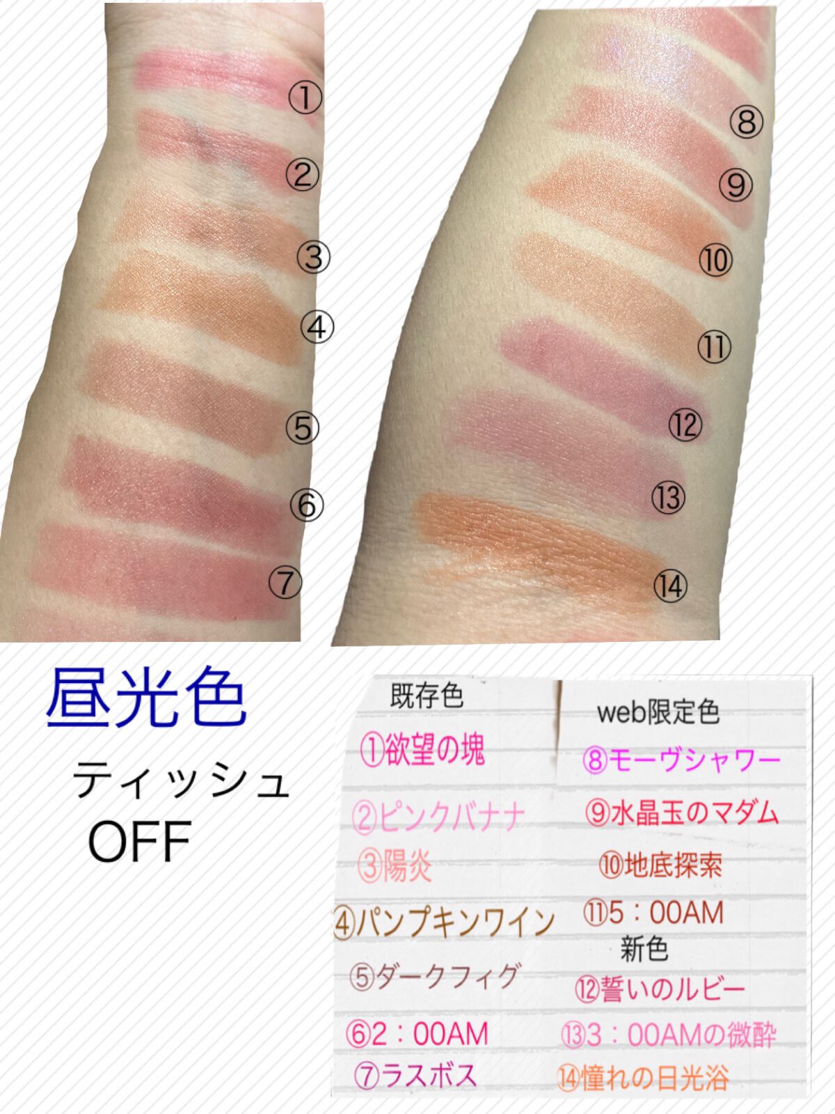 KATEリップモンスター01番〜14番までのざっくりしたスウォッチ表を作ってみました⭐️※02番のPinkbananaがカタカナのピンクバナナになってます💦1本ずつのレビュー、ミックスモンスターのレビューは後日あげます🎶#KATE#ケイト #...