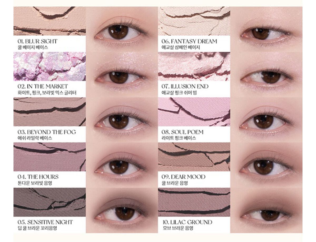 - 多彩なカラーを重ねて私だけのカラーレイヤリング 細分化された明度で混じり気のない陰影を楽しめます。 カラーは5段階の明度に分かれているので、 私だけの多様な仕上がりに。 MATTE パーソナルカラーに合わせたカラー GULITTERS 特別な粒子、カラーが作る立体的な輝き
