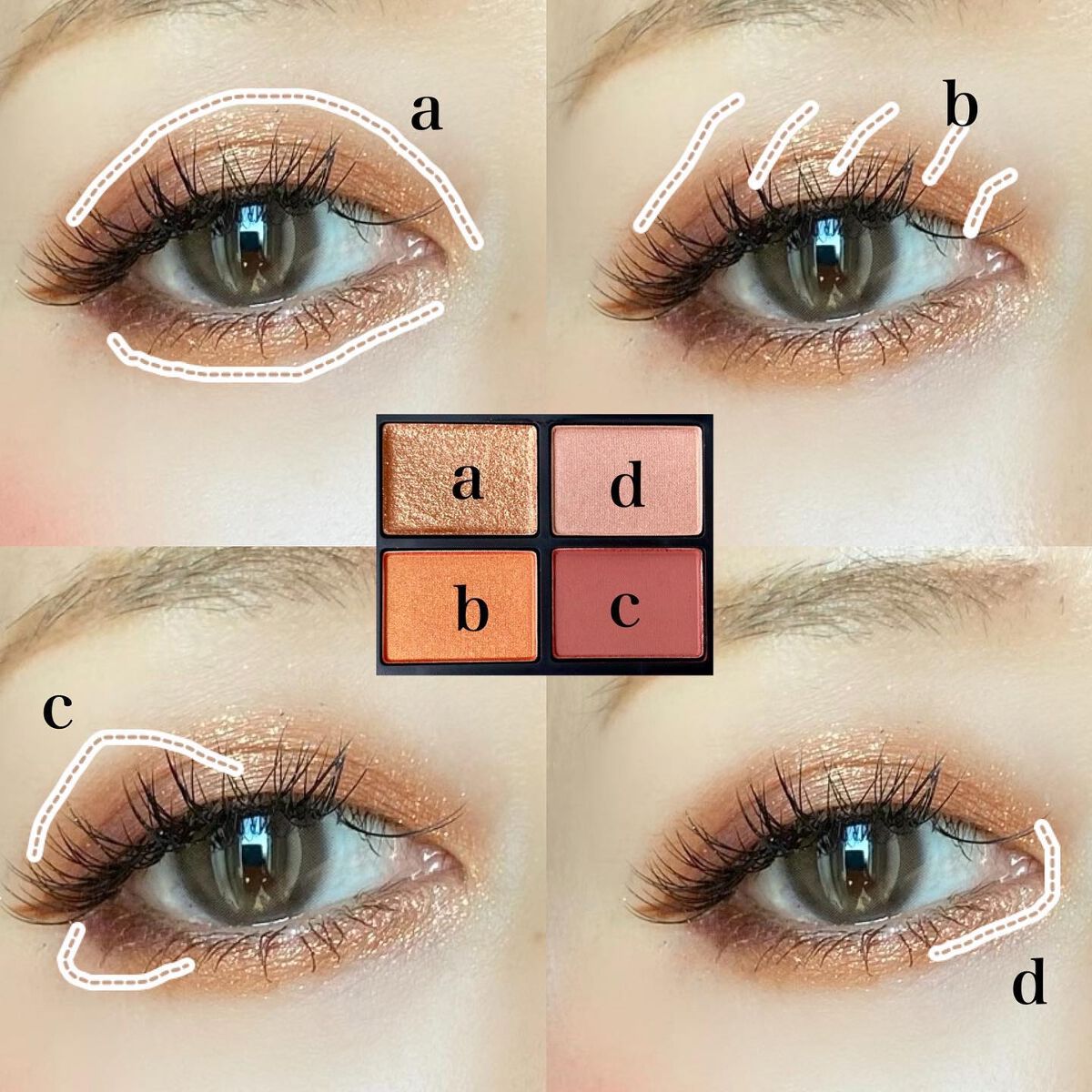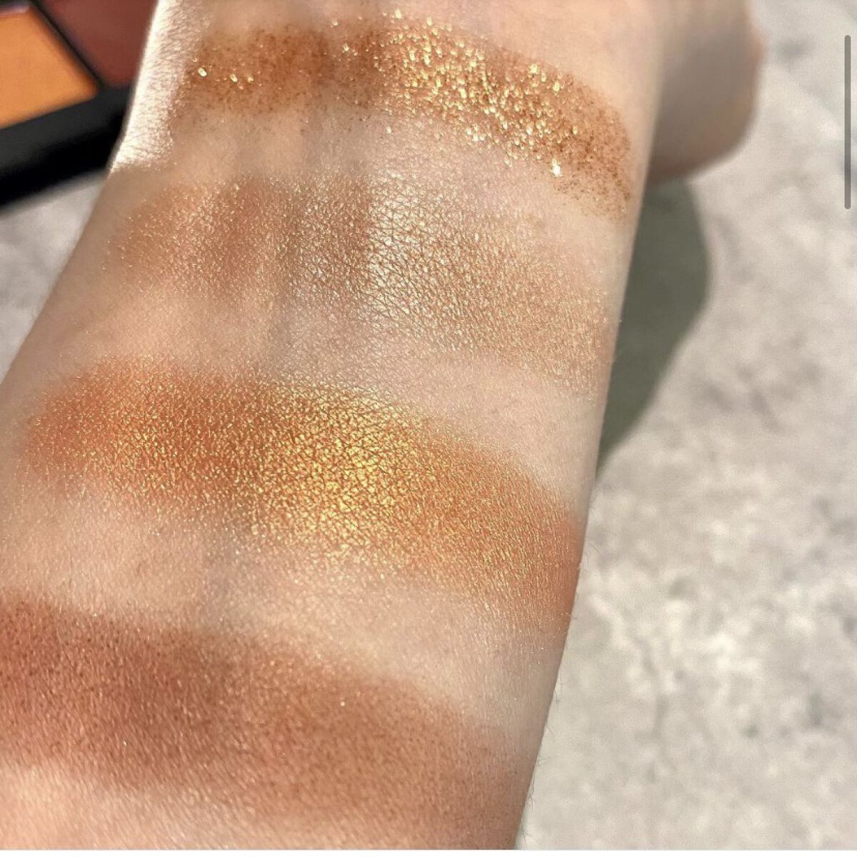 うん、やっぱ可愛い!♡ 神配色👏🏻 今の時期より夏に登場頻度増えそう🙌 ギラギラゴールドがタイプすぎる♡ 左:イエローゴールドシマー ⇒コッパーとゴールドのラメがたっぷり! 大粒ラメがギラギラ夏っぽい 右:シマリングライトピーチ ⇒発色は薄いもののベースや涙袋にだ活躍してくれる ピンクベージュ 左:オレンジ&ゴールデンシマー ⇒ありそうでなかったオレンジカラー オレンジからのゴールドの偏光がたまらない🍊 右:マットパープルレッド ⇒かなり濃いめのパープル!オレンジメイクにアクセントと深みを出してくれる
