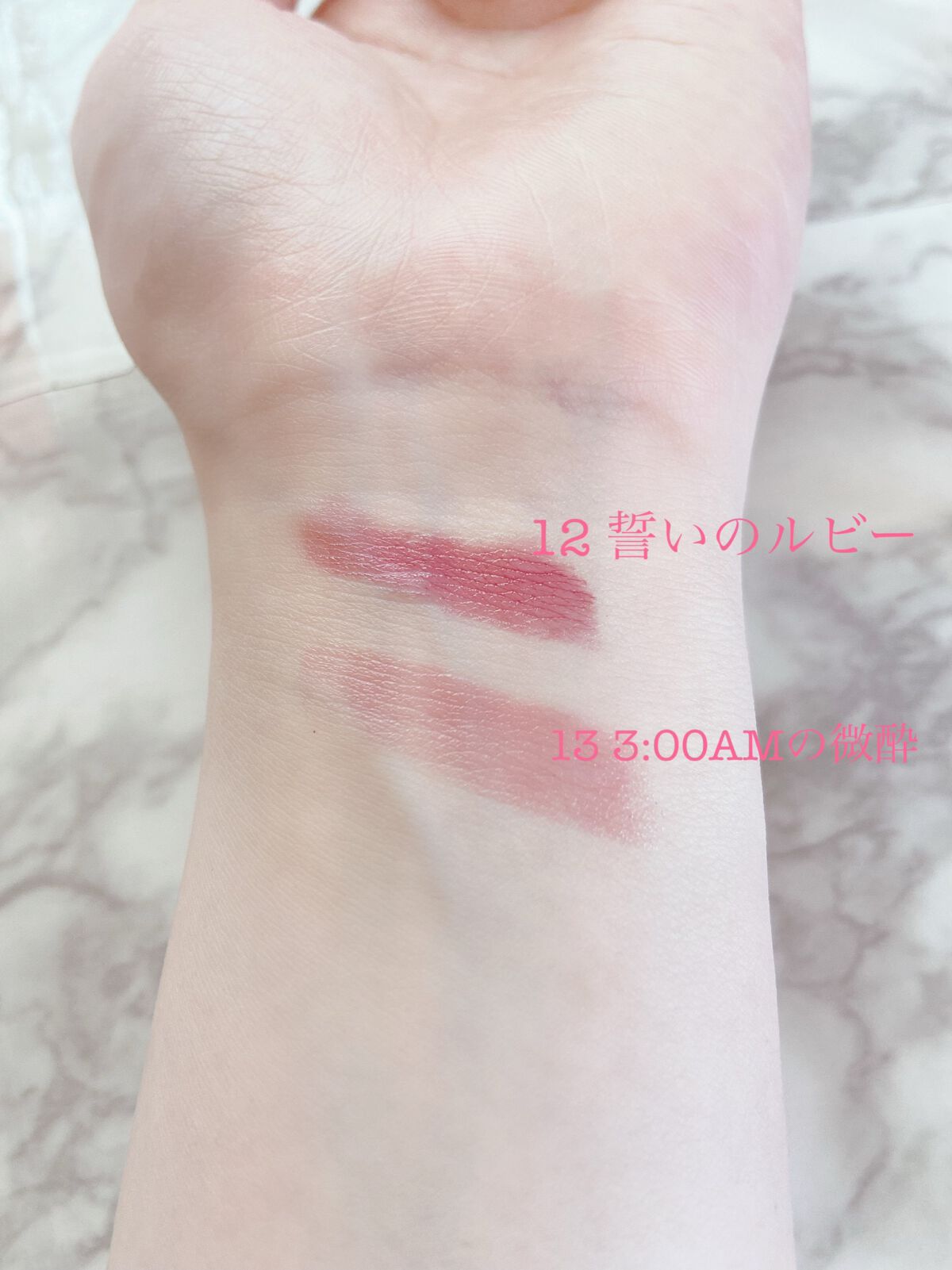 KATEケイトリップモンスター07ラスボス 12誓いのルビー 133:00AMの微酔12番13番無事確保!持ち歩きまくったラスボスの傷だらけパケと比較してまだツルツルですねw廃盤になるわけじゃなくてほんとによかった〜#リプモン #ブルベ ...