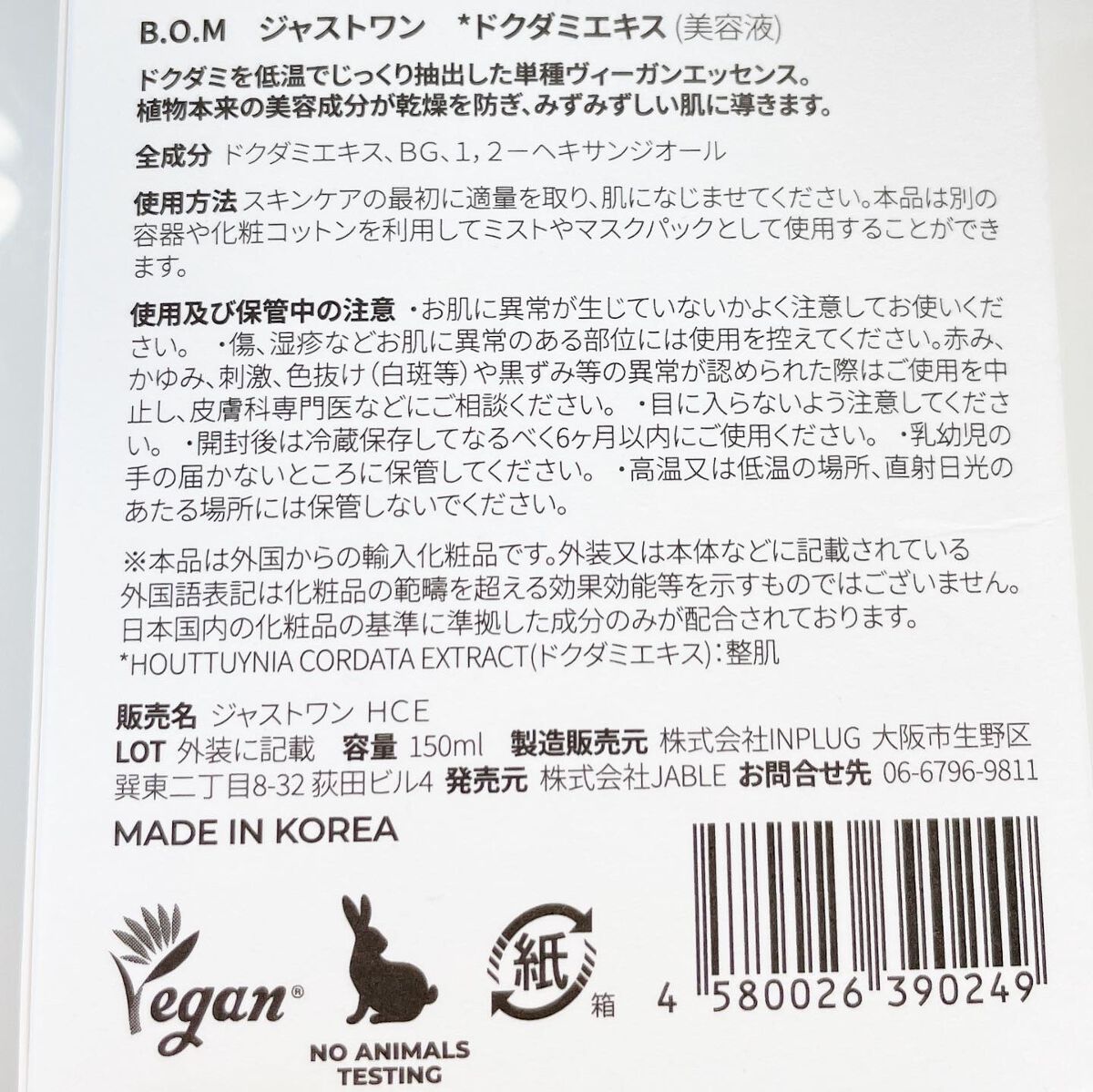 商品詳細情報BOM JUST ONE ヴィーガンエッセンス