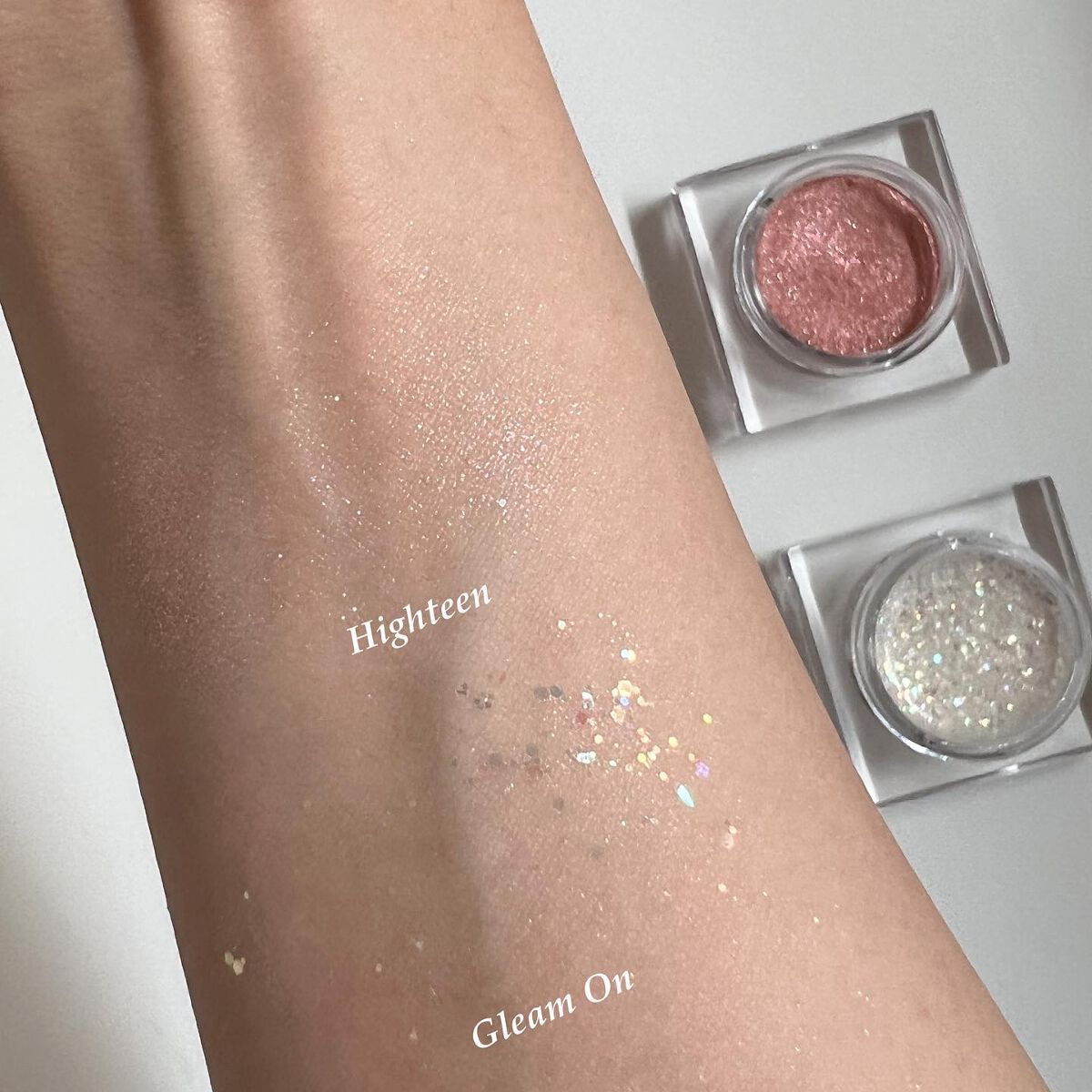 透明感*のある上品な濡れ感仕上がりが可愛いLUMMIRのフラッシュポットハイライト✨ 蓋を開けた瞬間からうっとりするくらいの可愛さ🙆♀️ ギラつき感のないきめ細かい光り方のラメでずっと見てられるくらいきれい🥹✨ オイルベースなので少量でも伸びてコスパも◎ つける量でキラキラ感の調節ができるから、どんなシーンでも使いやすい🫰