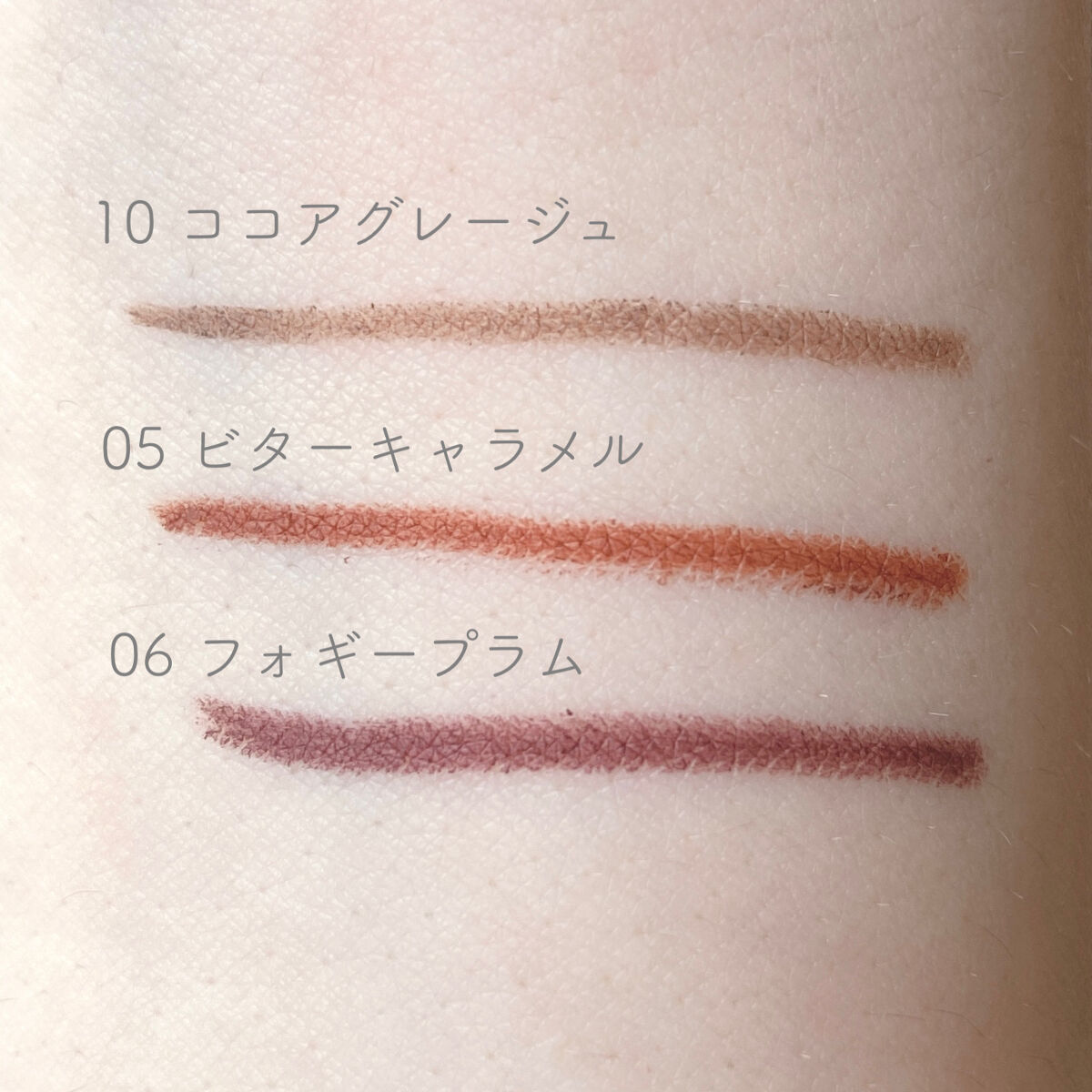 - <01 ディープブラック> メチルトリメチコン、トリメチルシロキシケイ酸、(アクリレーツ/アクリル酸ステアリル/メタクリル酸ジメチコン)コポリマー、ポリエチレン、カルナウバロウ、キャンデリラロウ、ジメチコン、水添レシチン、シリカ、メタクリル酸メチルクロスポリマー、トコフェロール、スクワラン、ホホバ種子油、マカデミア種子油、ヒアルロン酸Na、メチコン、(+/-)水酸化Al、酸化鉄、マイカ、酸化チタン <02 ミディアムブラウン> メチルトリメチコン、トリメチルシロキシケイ酸、(アクリレーツ/アクリル酸ステアリル/メタクリル酸ジメチコン)コポリマー、ポリエチレン、カルナウバロウ、キャンデリラロウ、ジメチコン、水添レシチン、シリカ、メタクリル酸メチルクロスポリマー、トコフェロール、スクワラン、ホホバ種子油、マカデミア種子油、ヒアルロン酸Na、メチコン、(+/-)水酸化Al、酸化鉄、マイカ、酸化チタン <03 ダークブラウン> メチルトリメチコン、トリメチルシロキシケイ酸、(アクリレーツ/アクリル酸ステアリル/メタクリル酸ジメチコン)コポリマー、ポリエチレン、カルナウバロウ、スクワラン、ジメチコン、水添レシチン、シリカ、トコフェロール、メタクリル酸メチルクロスポリマー、キャンデリラロウ、ホホバ種子油、マカデミア種子油、ヒアルロン酸Na、メチコン、水酸化Al、酸化鉄、酸化チタン、マイカ <04 ガーネットバーガンディ> メチルトリメチコン、トリメチルシロキシケイ酸、(アクリレーツ/アクリル酸ステアリル/メタクリル酸ジメチコン)コポリマー、ポリエチレン、カルナウバロウ、ジメチコン、キャンデリラロウ、水添レシチン、シリカ、トコフェロール、メタクリル酸メチルクロスポリマー、スクワラン、ホホバ種子油、マカデミア種子油、ヒアルロン酸Na、メチコン、水酸化Al、酸化鉄、グンジョウ、酸化チタン、マイカ <06 フォギープラム> メチルトリメチコン、トリメチルシロキシケイ酸、(アクリレーツ/アクリル酸ステアリル/メタクリル酸ジメチコン)コポリマー、ポリエチレン、カルナウバロウ、ジメチコン、キャンデリラロウ、水酸化Al、水添レシチン、シリカ、トコフェロール、メタクリル酸メチルクロスポリマー、スクワラン、ホホバ種子油、マカデミア種子油、ヒアルロン酸Na、メチコン、酸化鉄、グンジョウ、酸化チタン、マイカ <07 アズキブラウン> メチルトリメチコン、トリメチルシロキシケイ酸、(アクリレーツ/アクリル酸ステアリル/メタクリル酸ジメチコン)コポリマー、ポリエチレン、カルナウバロウ、キャンデリラロウ、ジメチコン、水添レシチン、シリカ、トコフェロール、メタクリル酸メチルクロスポリマー、スクワラン、ホホバ種子油、マカデミア種子油、水酸化Al、ハイドロゲンジメチコン、ヒアルロン酸Na、メチコン、酸化鉄、グンジョウ、マイカ、酸化チタン <09 ダージリンピンク> メチルトリメチコン、トリメチルシロキシケイ酸、(アクリレーツ/アクリル酸ステアリル/メタクリル酸ジメチコン)コポリマー、合成ワックス、カルナウバロウ、キャンデリラロウ、ジメチコン、水酸化Al、ハイドロゲンジメチコン、水添レシチン、シリカ、トコフェロール、メタクリル酸メチルクロスポリマー、スクワラン、ホホバ種子油、マカデミア種子油、ヒアルロン酸Na、メチコン、酸化鉄、酸化チタン、マイカ、グンジョウ <11 クラウディーグレー> メチルトリメチコン、トリメチルシロキシケイ酸、(アクリレーツ/アクリル酸ステアリル/メタクリル酸ジメチコン)コポリマー、合成ワックス、カルナウバロウ、ジメチコン、キャンデリラロウ、水酸化Al、水添レシチン、シリカ、トコフェロール、メタクリル酸メチルクロスポリマー、ハイドロゲンジメチコン、スクワラン、ホホバ種子油、マカデミア種子油、ヒアルロン酸Na、メチコン、酸化鉄、酸化チタン、マイカ <15 カプチーノピンク> メチルトリメチコン、トリメチルシロキシケイ酸、(アクリレーツ/アクリル酸ステアリル/メタクリル酸ジメチコン)コポリマー、合成ワックス、カルナウバロウ、ジメチコン、キャンデリラロウ、水酸化Al、水添レシチン、シリカ、トコフェロール、メタクリル酸メチルクロスポリマー、スクワラン、ホホバ種子油、マカデミア種子油、ヒアルロン酸Na、メチコン、酸化チタン、酸化鉄、マイカ <05 ビターキャラメル> メチルトリメチコン、トリメチルシロキシケイ酸、(アクリレーツ/アクリル酸ステアリル/メタクリル酸ジメチコン)コポリマー、ポリエチレン、カルナウバロウ、ジメチコン、キャンデリラロウ、水添レシチン、シリカ、トコフェロール、メタクリル酸メチルクロスポリマー、スクワラン、ホホバ種子油、マカデミア種子油、ヒアルロン酸Na、メチコン、水酸化Al、酸化鉄、マイカ、酸化チタン <08 マッチャカーキ> メチルトリメチコン、トリメチルシロキシケイ酸、(アクリレーツ/アクリル酸ステアリル/メタクリル酸ジメチコン)コポリマー、合成ワックス、