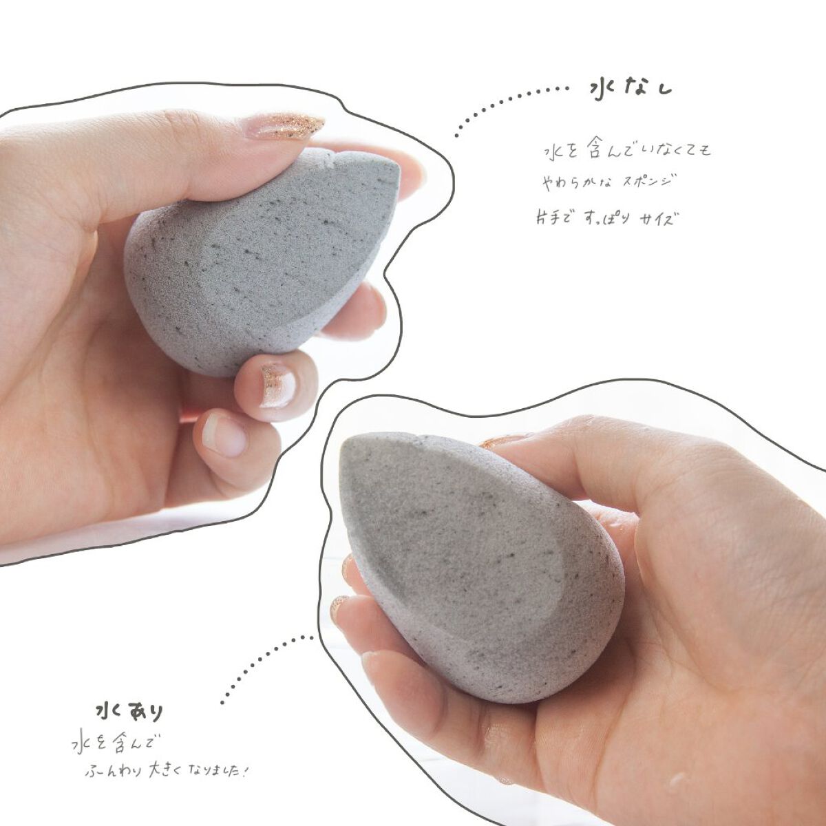 このスポンジのカラーのグレー色はココナッツ色由来なので着色してないからお肌にも優しい設計ですよね♪ このスポンジ、とってもお水をよく含んで吸収してくれるので水分をたっぷり含ませると、モチモチで柔らかく膨らみます。 ファンデーションの仕上げの叩き込みにつかうとメイクがピタッとフィットしてくれて、ベースメイクがヨレにくくなるので必須アイテムです。 リキッドだと、ファンデーションをつけすぎたり、むらになったりと修正に手間があるけれどこのスポンジを仕上げにつかうと…… 不思議!余分に着いたファンデーションを省いてムラが均一になりツルンっとタマゴ肌にしあげられるよ😆🧡 もちろん、リキッドだけでなく、パウダーファンデーションにもリキッドどちらにも使えるので優秀です❣️ スポンジの先端部分は小鼻周り、口周りなどにとても使いやすい形状でした。 とにかく肌触りがモチモチ気持ち良いですを 柔らかなスポンジの使用感なのでお気に入り🤍゛