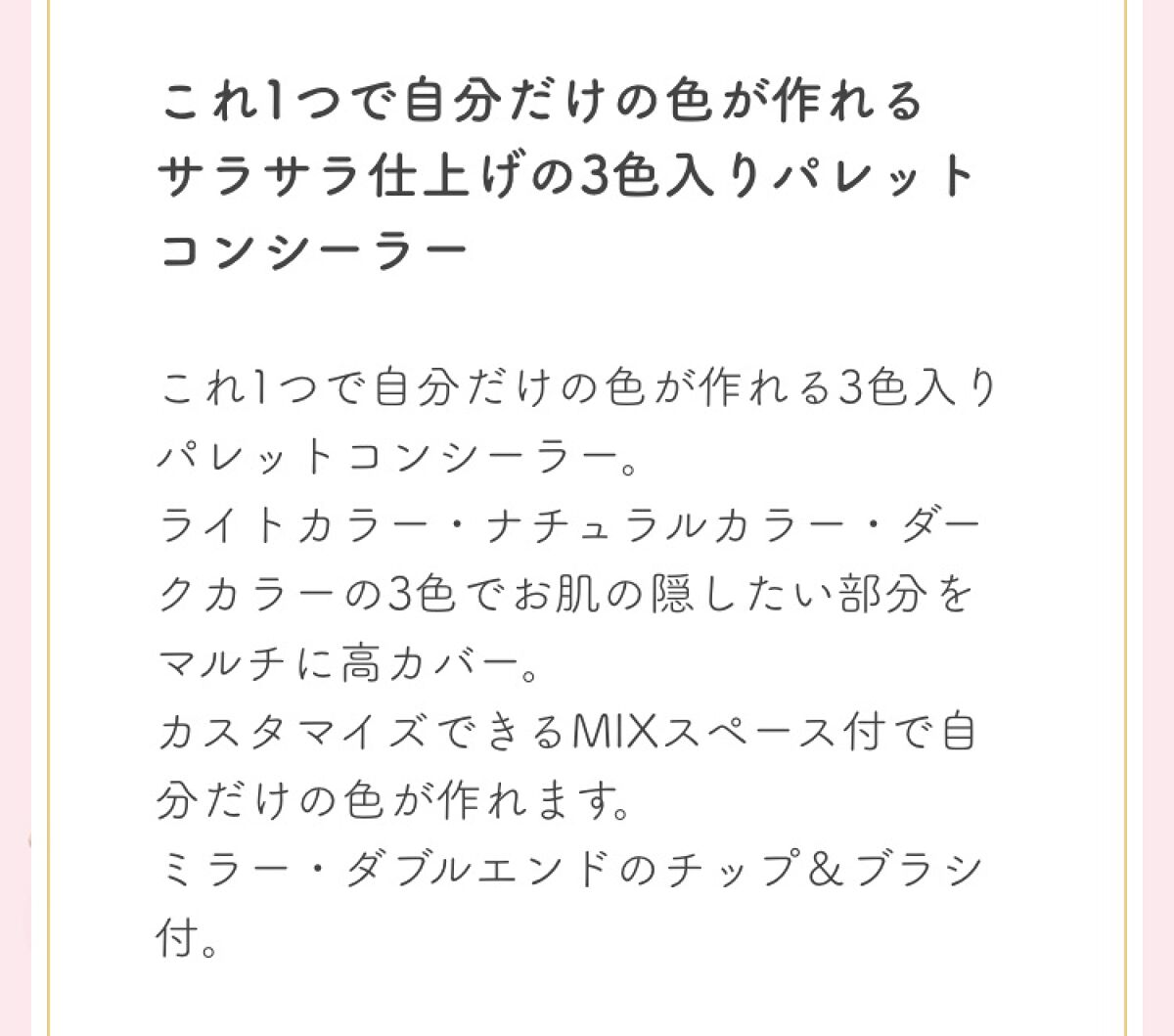 | コンシーラーランキング第35位 | 三色を使い分けて使用したり 混ぜて自分に合うカラーを作ることも できるので、値段以上だと思います❤️ | 詳細を見る | |