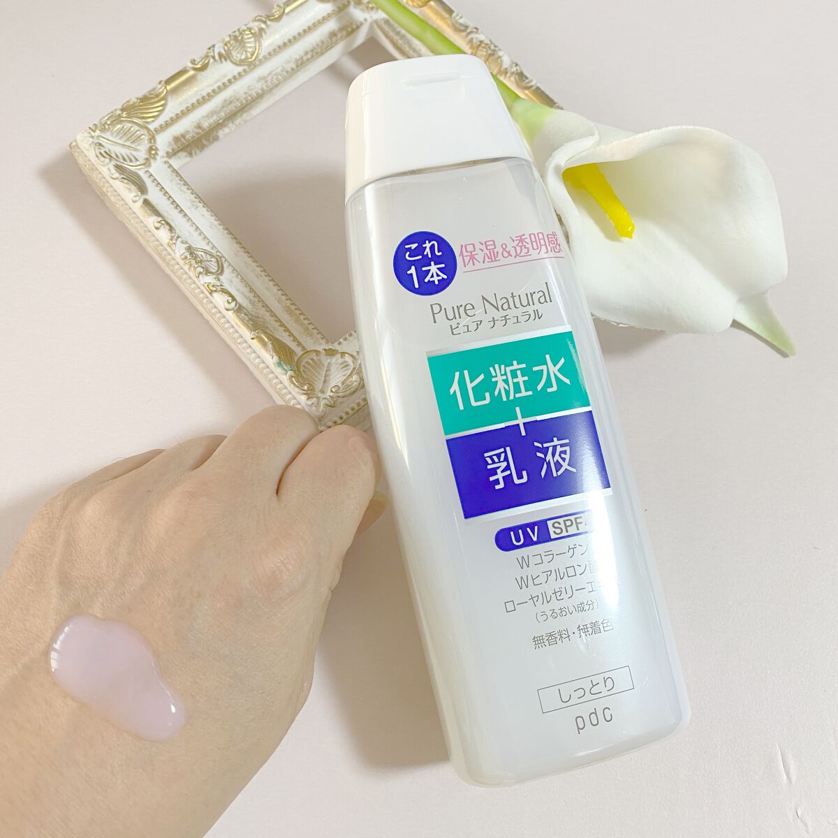 pdcピュアナチュラルエッセンスローションUVスキンケアをするのが面倒くさい時にとりあえずこれを使用してます😂❣️化粧水と乳液これひとつで乾燥対策にも✨乾燥による敏感肌にも🆗テクスチャーはとろっとしたみずみずしい乳液タイプ。肌馴染みがよくスー...