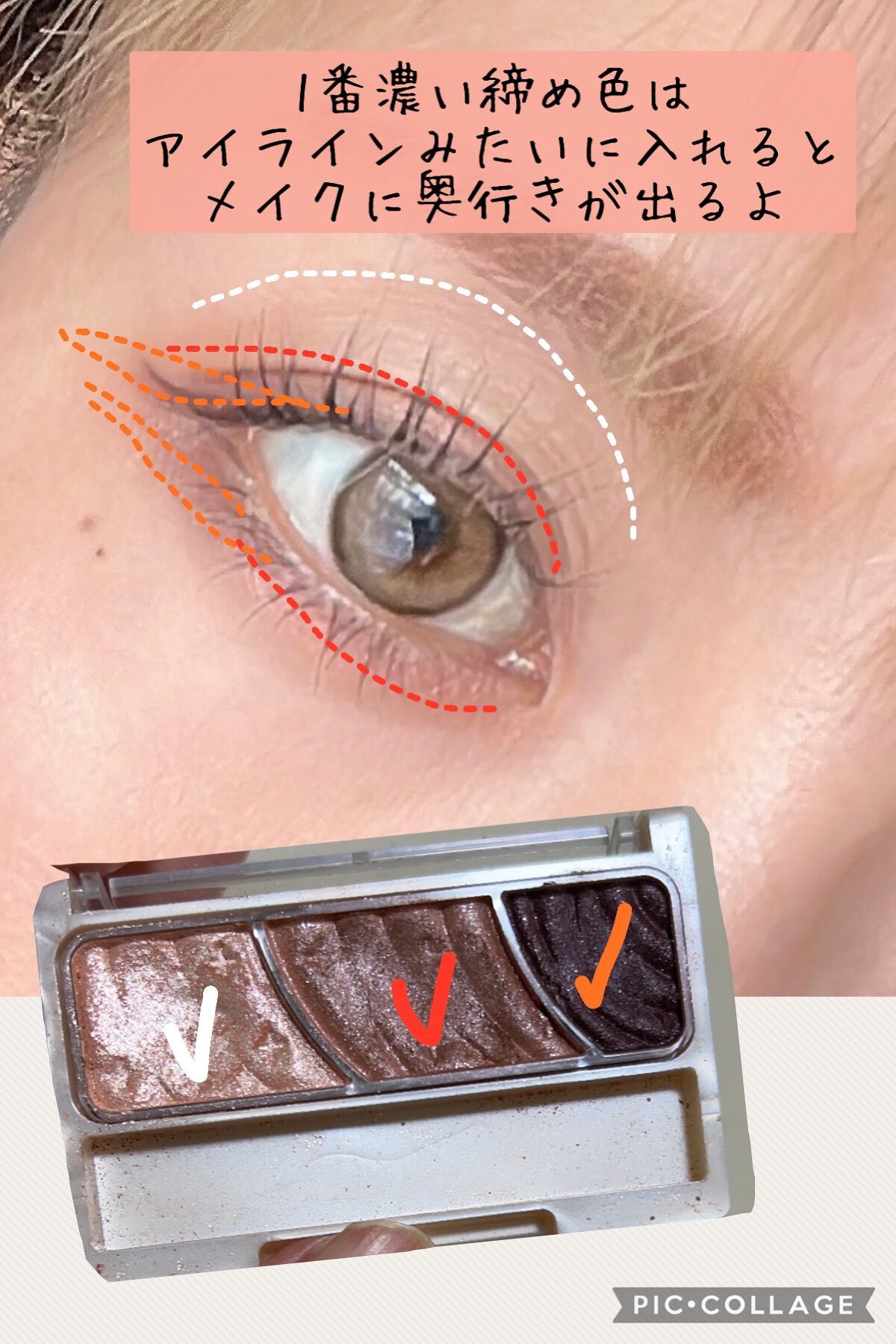 - 3色で簡単に明るく大きな目元に。 しっとり感触のアイシャドウ。 くすみを飛ばす明るさベース、ひとえ・奥二重の方でも幅広く塗れる肌なじみの良い中間色、 濃密高発色の締め色が目の輪郭を強調し大きな目元に。 微細パール配合でくすみを飛ばし、明るい目元へ。