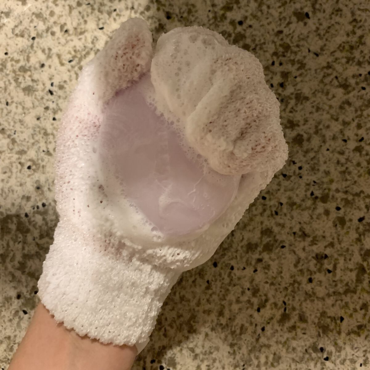 付属の角質つるつるミトンでくるくる撫でながら洗うものです。有効成分である殺菌成分「イソプロピルメチルフェノール」で蒸れて溜まった細菌を殺菌し、抗炎症成分「グリチルリチン酸2K」で繰り返しできるニキビを予防できるようになっており、殺菌と角質ケア...
