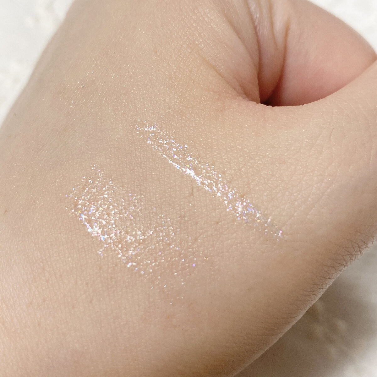 涙袋のちょい上?1番光が入る部分にラメライナー引くのにハマっててコスパ良過ぎて結局3色全部購入。 他社のラメライナーに比べて繊細で自然な大きさのラメ🫧 多色ラメで使いやすいクリスタルカラー。 どんなメイクにも合わせやすく、塗るだけで一気に目元が華やかになります💜 ダントツ1番使用頻度高いハートフィズ🩷 ピンクベージュ系、ピンク系のメイクと相性抜群。これ引くだけで一気に可愛らしいうるっと涙袋爆誕🥺