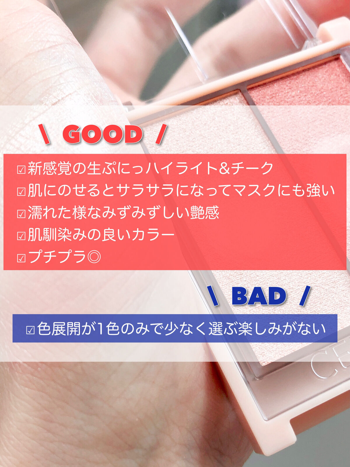 - LIPSベストコスメ2025 マルチパレット部門2位LIPSベストコスメ2024 フェイスパレット部門1位LIPSベストコスメ2023 ハイライト部門2位LIPSベストコスメ2022 下半期新作賞 パウダーチーク部門1位