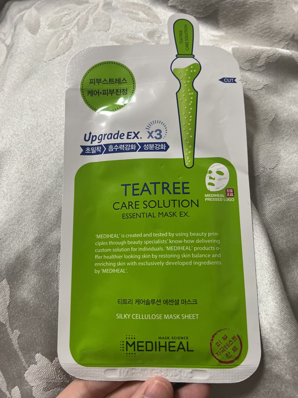 肌荒れ防止🌿韓国フェイスパック🇰🇷 "MEDIHEAL ティーツリーケア ソリューション エッセンシャルマスクEX" ティーツリーやシカ配合の鎮静系🌿 さっぱりした使用感だけどしっかり潤いも与えてくれます🫧 コスパ良くて使いやすい🙆♀️ 手軽に使えるのが嬉しい✌️