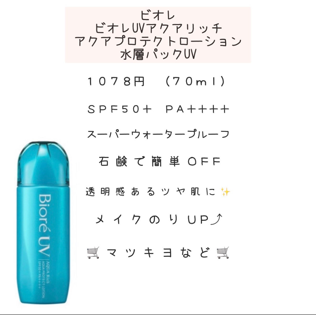 ビオレ ビオレUV アクアリッチ アクアプロテクトローション(水層パック) | 1,078円 |