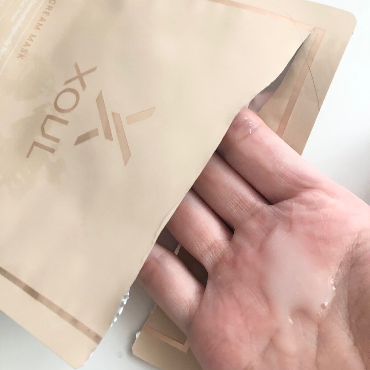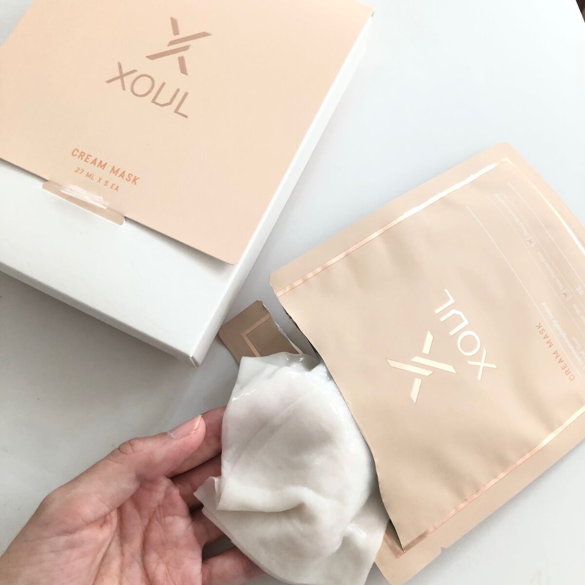 いま1番好きな韓国スキンケアブランドはXOULです!! 今までマイクロダーマブースター、レイヤードクリーム、モイストリップバーム、60デイズサンクリームを使ってきたのですが全部私好みで大当たり◎ XOULへの信頼度は日々増しています! 今回は韓国でシリーズ累計170万枚の売上を突破した「クリームマスク」を使ってみました◎ 「ヒト幹細胞培養液」を業界トップクラスの10,000ppm配合した贅沢なフェイスマスクです。 使用後すぐ艶のあるふっくら肌になるのはもちろん、すみずみまで美容液が届くおかげで翌日も良さを実感できるのが嬉しい。