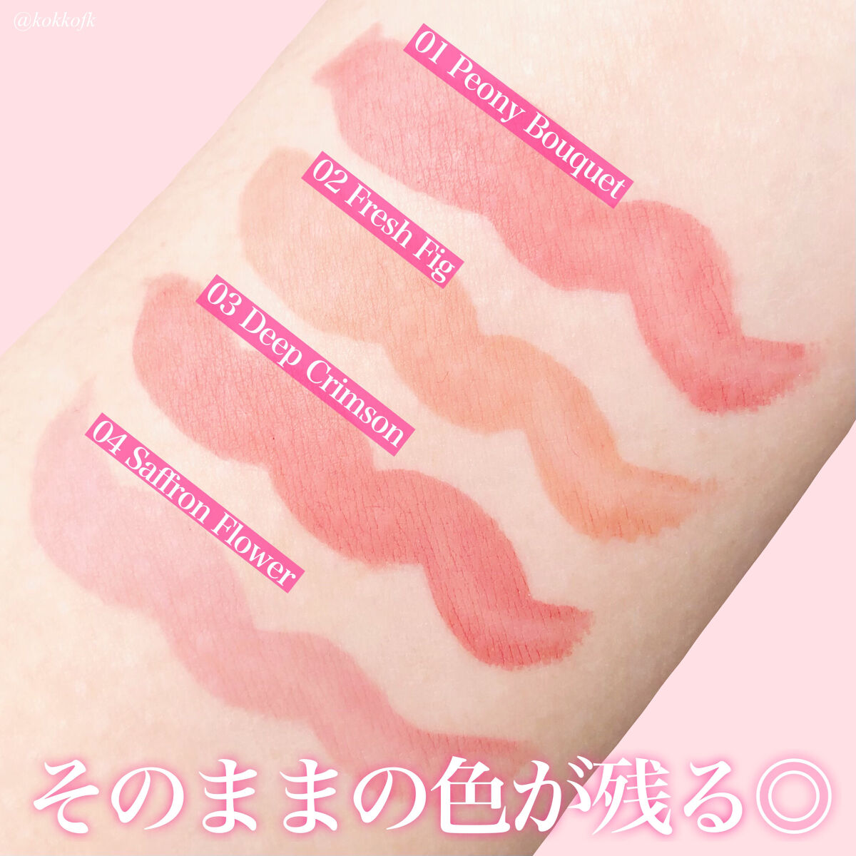 | 乾燥しにくく、艶感をキープしてくれて、ティント特有の色持ちも良く、ぷるっとしたジューシーな唇に仕上がります | 詳細を見る | |