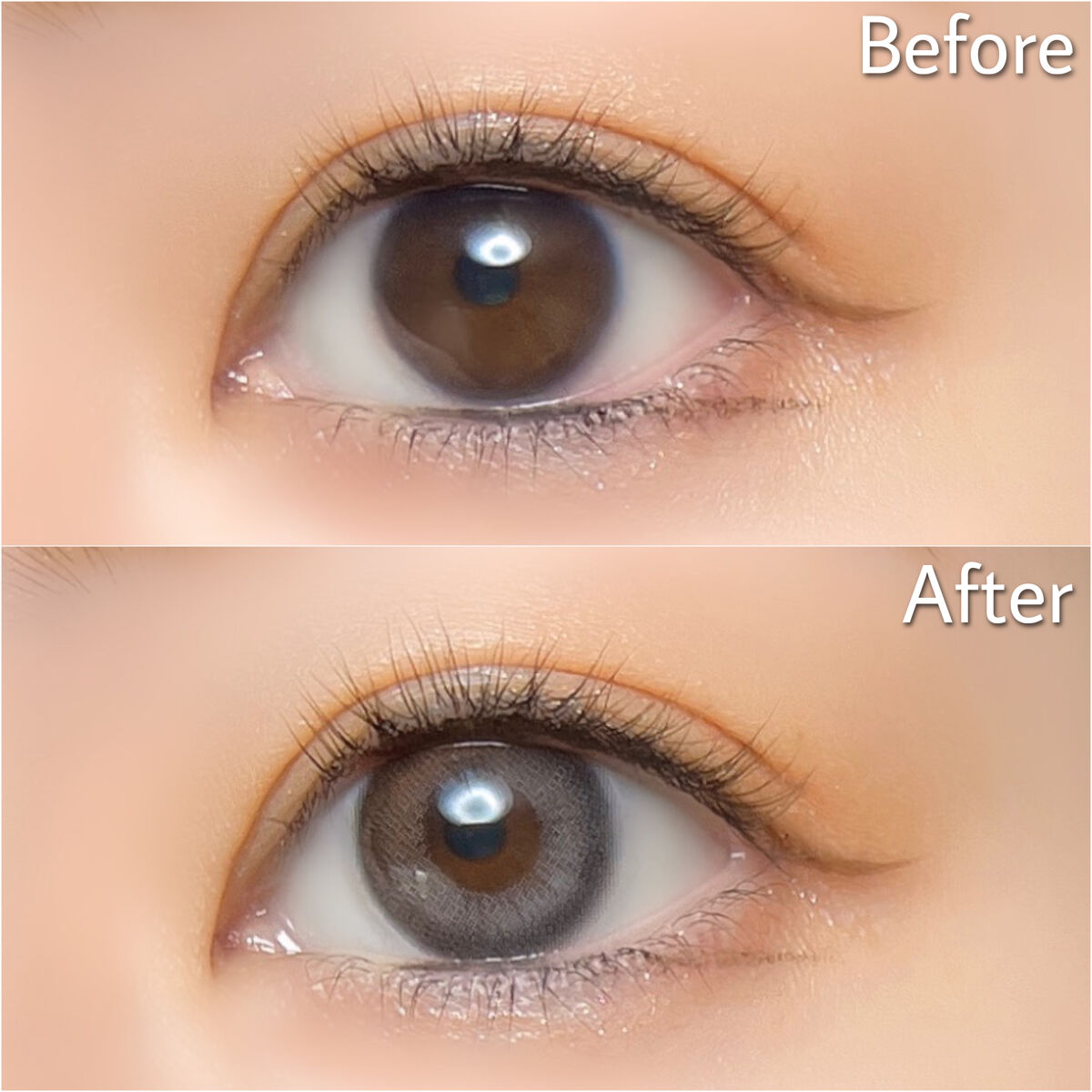 個性的なカラーからナチュラルなものまで幅広いラインナップで見てて楽しかったです! 透明感のあるブルーグレーが瞳に溶け込み、リアルなグレーアイに見せるレンズ。 透け感のある色味だけどしっかり発色するナチュラルハーフ系カラコン。着色直径も小さめなので着せ替え感があってかわいい。 N's COLLECTIONはレンズのつけ心地もすごく良くて他のカラーもとっても可愛いです!