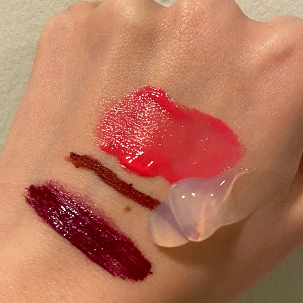 とにかくツヤツヤでぷるぷるの仕上がりになって最高にかわいい♡ 色持ちも抜群で食べても落ちにくいところもいい!! 密着力が高くてむっちりとしたかわいい唇に! それぞれ香りがついていて、フルーティーグラムティントはりんごのような香りで、ジューシーイングヌードグラスはブドウのような香りがするよ!