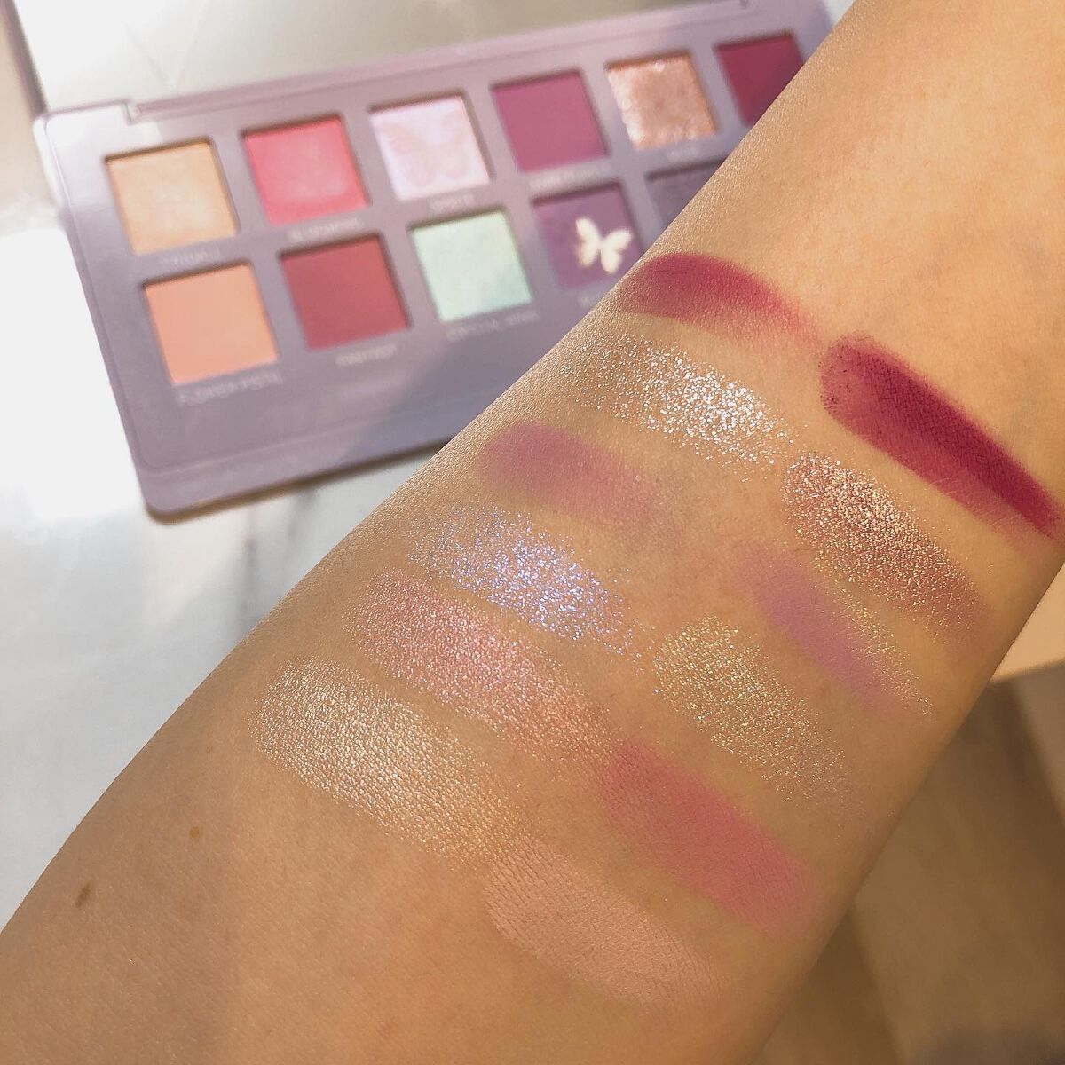 アイシャドウ・チーク・ハイライト・シェーディングが入った多機能パレット。このパレット𝟭つで統一感のあるメイクができます🌸 淡いピンクアプリコットカラーが春にピッタリ🫶🏻ラメもとっても繊細で透明感のあるアイメイクができます💖