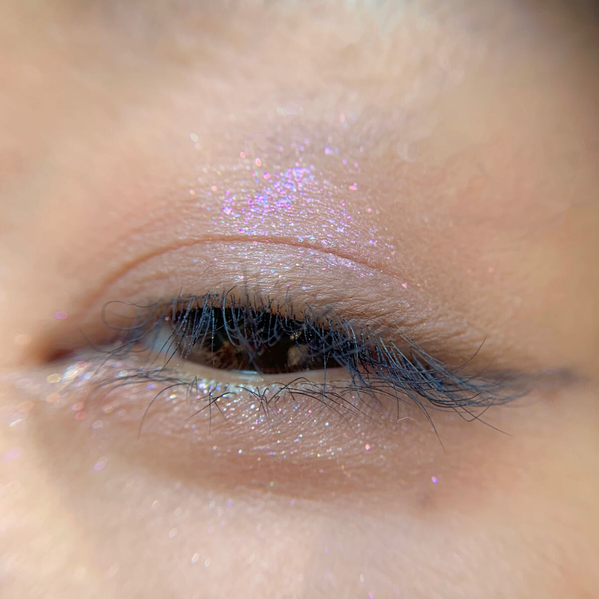 オイル成分配合なので粉質はふんわりクリーミー。 発色・青み抜群で1430円とは良い意味で思えない❣️ 個人的にパール感は物足りないので最後に別でグリッター足すともうバチ盛れ。 青み、深みが得意なブルベさん大歓喜だと思うので是非❣️