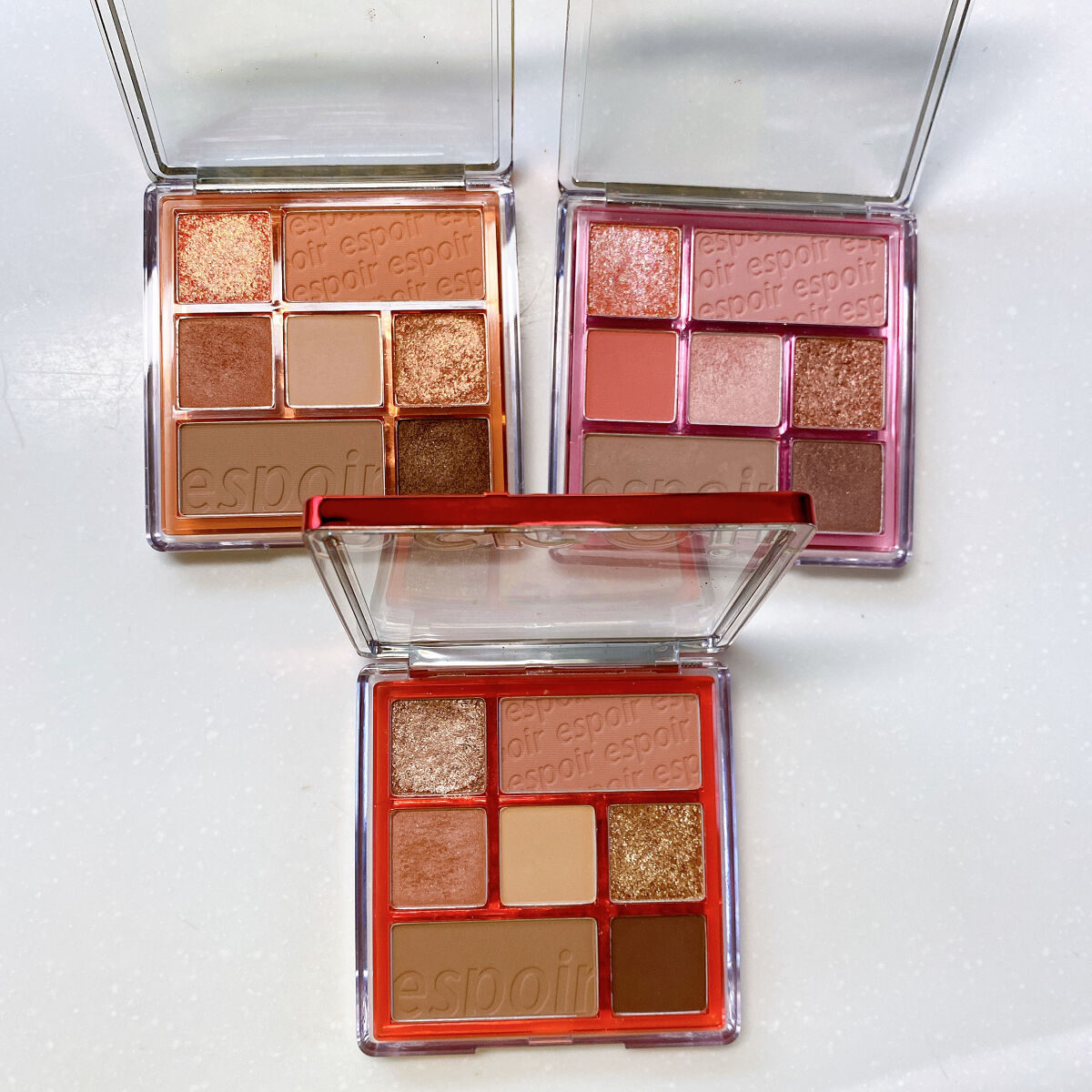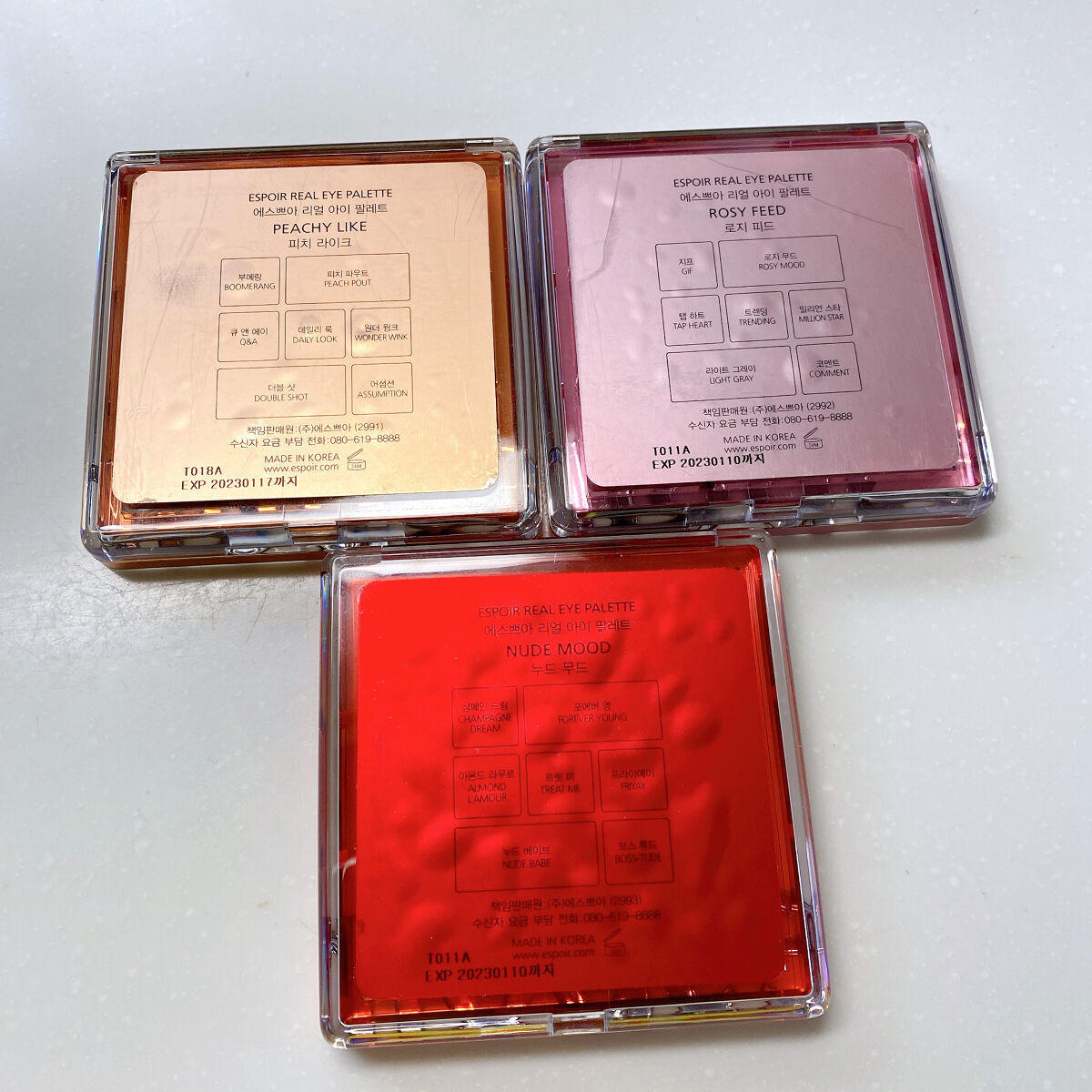 相変わらず愛されてる人気アイシャドウ🙄 今回のカラーは、ブライト春にピッタリとお勧めだったので、買っちゃいました。 ピーチというより、オレンジみたいな色味。ピーチの果肉よりかは、ピーチネクターみたいな? どれもふんわり柔らかい質感で、さすがにespoirだなーと感じさせる!