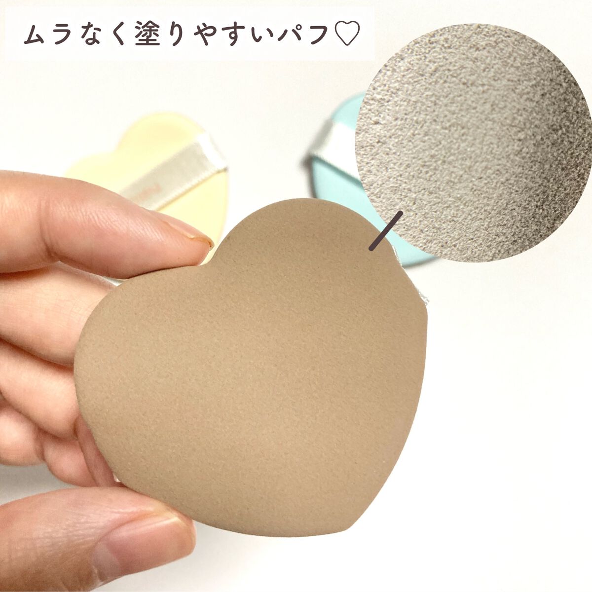 可愛すぎるパケのパフ♡ 卵型の一部分をカットしたような形のパフが2個セットになっていて、ハートケースに収納できるの🥹かわいい…! もっちもちの弾力なんだけど水を含ませるとブワッと膨らんで柔らか&もちもち&しっとりな肌あたりに。 見た目だけじゃなく使い勝手も良くてお気に入り♡