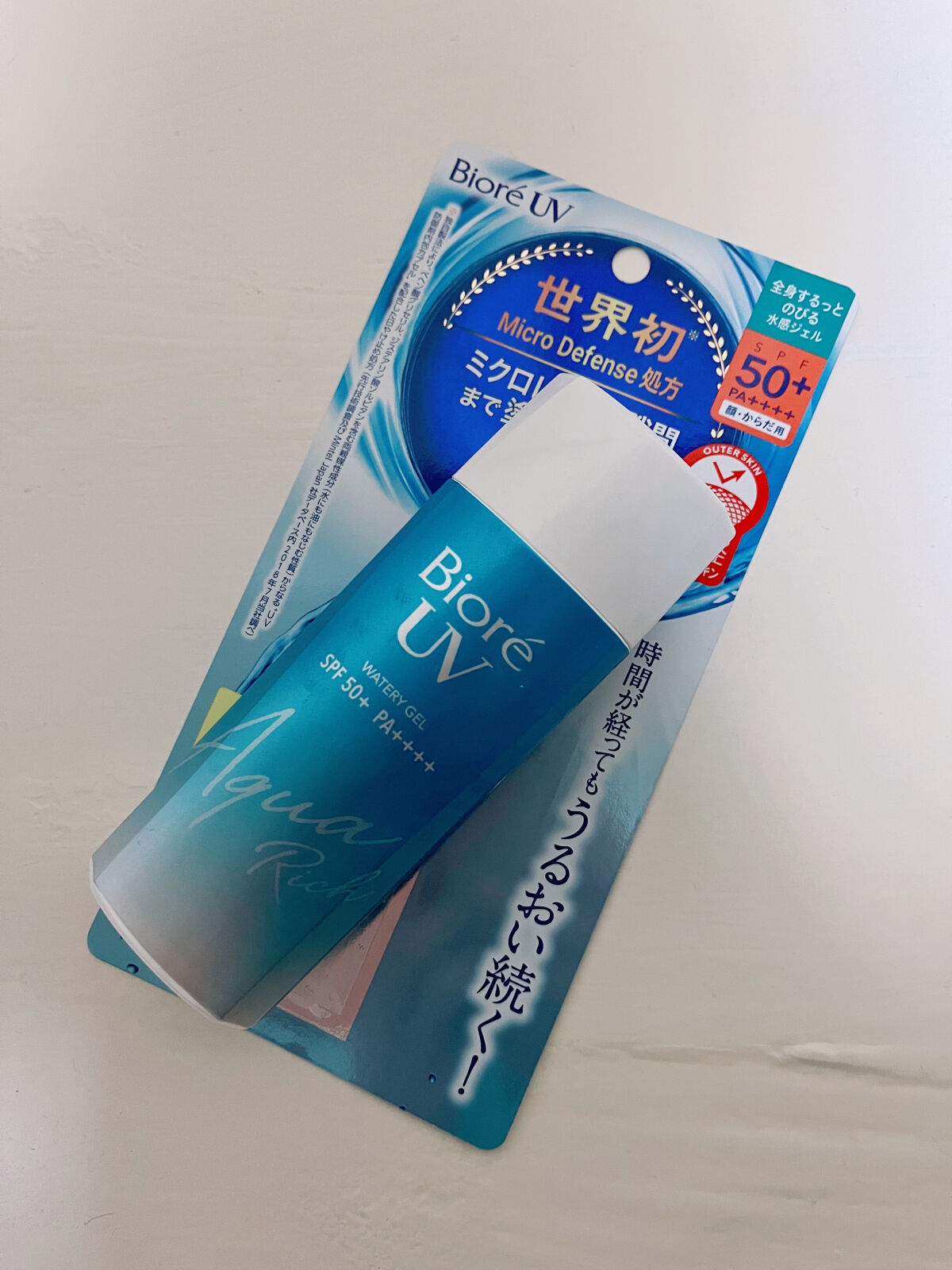 - 世界初*1Micro Defense 処方。ミクロレベルの隙間まで塗りムラ防ぐ。時間が経ってもうるおい続く!全身するっとのびる、水感ジェル。 ぷるぷるのウォーターカプセル配合。乾燥を防ぐ。 ヒアルロン酸・ローヤルゼリーエキス・BG配合(保湿成分)。 光ベール効果で、全身明るい美肌にみせます。 ◆SPF50+/PA++++ ◆スーパーウォータープルーフ(80分間の耐水試験で確認済み) ◆せっけんで落ちる ◆化粧下地にも使える ◆ホワイトミュゲのやさしい香り ◆着色料フリー ◆ニキビになりにくい処方(ノンコメドジェニックテスト済み*2) ◆アレルギーテスト済み*2 *1 独自製法により、ベヘン酸グリセリル、ジステアリン酸ソルビタンを含む両親媒性成分(水にも油にもなじむ性質)からなる“UV防御剤内包カプセル”を配合した日やけ止め処方(先行技術調査及びMintel Japan社データベース内2018年7月当社調べ) *2 すべての方にコメド(ニキビのもと)ができない、アレルギーが起こらないというわけではありません。