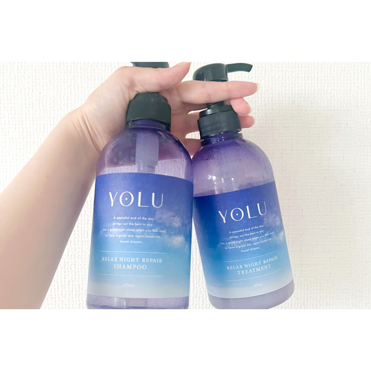 「YOLU」さまから商品提供していただきました♡\\サラサラ髪へ🌙//*YOLU*リラックスナイトリペアシャンプー&トリートメント深呼吸したくなるようなネイビーブルーのグラデーションのパケ🌙シャンプーはやわらかめのテクスチャー泡立ちはとても良...