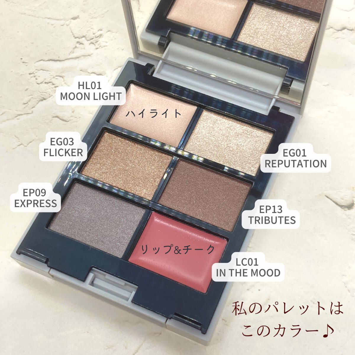 自分の好きなカラー、質感から自由に選べるパレット。 アイシャドウもマットやパールなど色んな質感から選べて 私のイチオシカラーは EGM08 ギャラクシービーム。 この偏光パールが可愛いのよ… 自分の好きなカラーだけで構成できるって素敵すぎん?