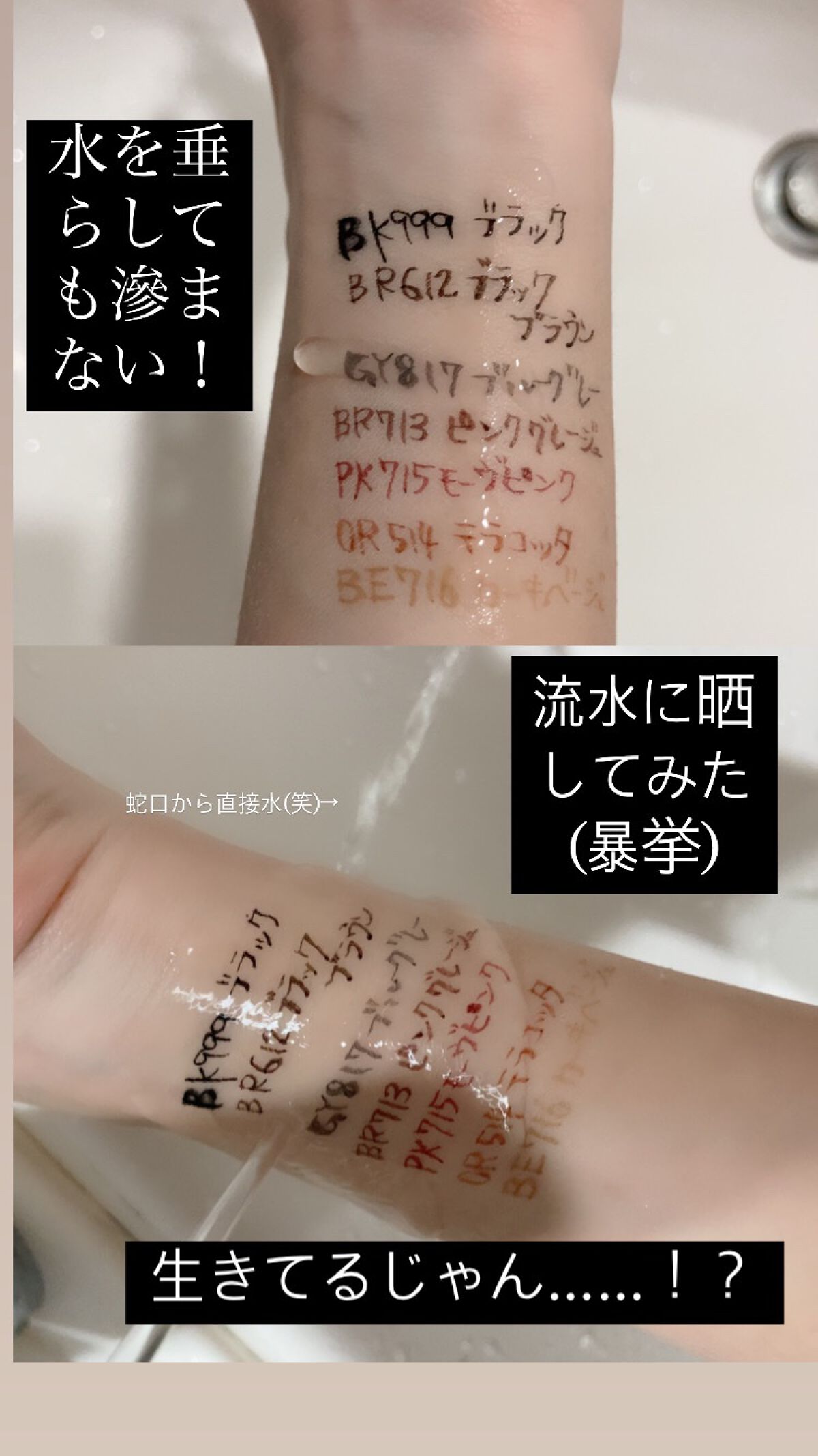 - <BE716 葉脈> 水、BG、(アクリル酸エチルヘキシル/メタクリル酸メチル)コポリマー、ポリアスパラギン酸Na、(アクリレーツ/メチルスチレン/スチレン)コポリマーアンモニウム、1,2-ヘキサンジオール、カミツレ花エキス、サトザクラ花エキス、チャ葉エキス、ヒアルロン酸Na、水酸化Al、クエン酸、ベヘネス-30、EDTA-2Na、リンゴ酸、アスコルビン酸、エチルヘキシルグリセリン、フェノキシエタノール、メチルパラベン、エチルパラベン、デヒドロ酢酸Na、酸化チタン、酸化鉄、カーボンブラック <BK999 夜の濃度> 水、BG、(アクリル酸エチルヘキシル/メタクリル酸メチル)コポリマー、1,2-ヘキサンジオール、(スチレン/アクリレーツ)コポリマー、(アクリレーツ/メチルスチレン/スチレン)コポリマーアンモニウム、カミツレ花エキス、サトザクラ花エキス、チャ葉エキス、ヒアルロン酸Na、エチルヘキシルグリセリン、ラウリル硫酸Na、トコフェロール、リンゴ酸、アスコルビン酸、フェノキシエタノール、メチルパラベン、エチルパラベン、カーボンブラック <BR612 現在地> 水、BG、(アクリル酸エチルヘキシル/メタクリル酸メチル)コポリマー、(アクリレーツ/メチルスチレン/スチレン)コポリマーアンモニウム、1,2-ヘキサンジオール、ポリアスパラギン酸Na、カミツレ花エキス、サトザクラ花エキス、チャ葉エキス、ヒアルロン酸Na、セテス-20、ベヘネス-30、水酸化Al、エチルヘキシルグリセリン、EDTA-2Na、トコフェロール、リンゴ酸、アスコルビン酸、フェノキシエタノール、メチルパラベン、エチルパラベン、デヒドロ酢酸Na、酸化鉄、カーボンブラック <BR713 桃色球根> 水、BG、(アクリル酸エチルヘキシル/メタクリル酸メチル)コポリマー、1,2-ヘキサンジオール、ポリアスパラギン酸Na、(アクリレーツ/メチルスチレン/スチレン)コポリマーアンモニウム、カミツレ花エキス、サトザクラ花エキス、チャ葉エキス、ヒアルロン酸Na、セテス-20、水酸化Al、ベヘネス-30、EDTA-2Na、AMP、リンゴ酸、アスコルビン酸、エチルヘキシルグリセリン、フェノキシエタノール、メチルパラベン、エチルパラベン、デヒドロ酢酸Na、酸化チタン、酸化鉄、カーボンブラック、赤226 <GY817 夜行性> 水、BG、(アクリル酸エチルヘキシル/メタクリル酸メチル)コポリマー、ポリアスパラギン酸Na、(アクリレーツ/メチルスチレン/スチレン)コポリマーアンモニウム、1,2-ヘキサンジオール、カミツレ花エキス、サトザクラ花エキス、チャ葉エキス、ヒアルロン酸Na、水酸化Al、セテス-20、ベヘネス-30、エチルヘキシルグリセリン、EDTA-2Na、クエン酸、トコフェロール、リンゴ酸、アスコルビン酸、フェノキシエタノール、メチルパラベン、エチルパラベン、デヒドロ酢酸Na、酸化チタン、酸化鉄、カーボンブラック <OR514 お作法> 水、BG、(アクリル酸エチルヘキシル/メタクリル酸メチル)コポリマー、(アクリレーツ/メチルスチレン/スチレン)コポリマーアンモニウム、ポリアスパラギン酸Na、カミツレ花エキス、サトザクラ花エキス、チャ葉エキス、ヒアルロン酸Na、セテス-20、エチルヘキシルグリセリン、EDTA-2Na、水酸化Al、クエン酸、トコフェロール、ベヘネス-30、リンゴ酸、アスコルビン酸、フェノキシエタノール、メチルパラベン、エチルパラベン、デヒドロ酢酸Na、酸化鉄、カーボンブラック <PK715 いちご園> 水、BG、(アクリル酸エチルヘキシル/メタクリル酸メチル)コポリマー、1,2-ヘキサンジオール、セテス-20、(アクリレーツ/メチルスチレン/スチレン)コポリマーアンモニウム、ポリアスパラギン酸Na、カミツレ花エキス、サトザクラ花エキス、チャ葉エキス、ヒアルロン酸Na、水酸化Al、ベヘネス-30、AMP、EDTA-2Na、リンゴ酸、アスコルビン酸、エチルヘキシルグリセリン、フェノキシエタノール、メチルパラベン、エチルパラベン、デヒドロ酢酸Na、酸化チタン、カーボンブラック、赤226